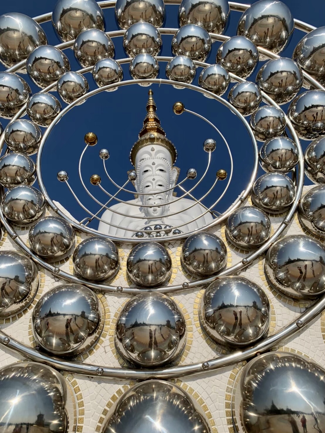 Near the spectacular pagoda is a chapel called Five Buddha Viharn. It was built to celebrate the occasion of the 85th birthday of His Majesty King Rama 9. You can walk inside of Viharn to worship the holy Buddha and donate money to the temple.