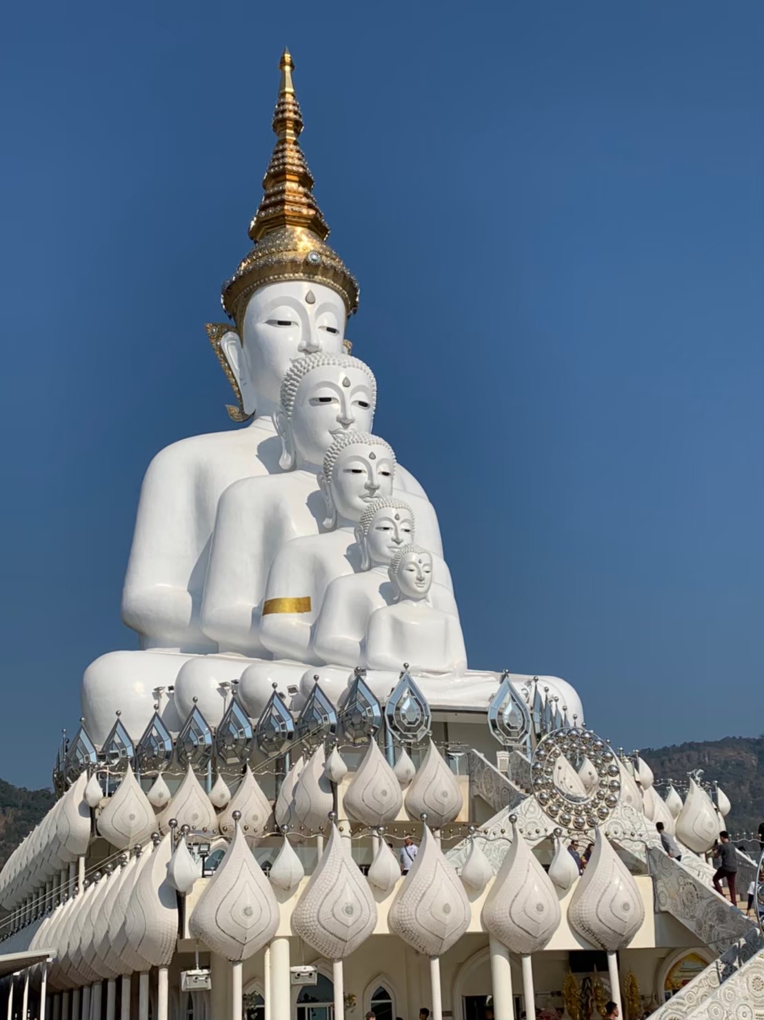 Phra Thart Pha Sorn Kaew Temple was our first stop. It is located on the hill of Tang Dang Village in Khao Kho. Why do they call this temple "Pha Sorn Kaew"? Pha means cliff in Thai, Sorn means to hide, and Kaew mean glass or crystal ball. The villagers said they saw a crystal ball floating in the sky and it went into a cave in the cliff and it did not appear again. So, it has been called that ever since.