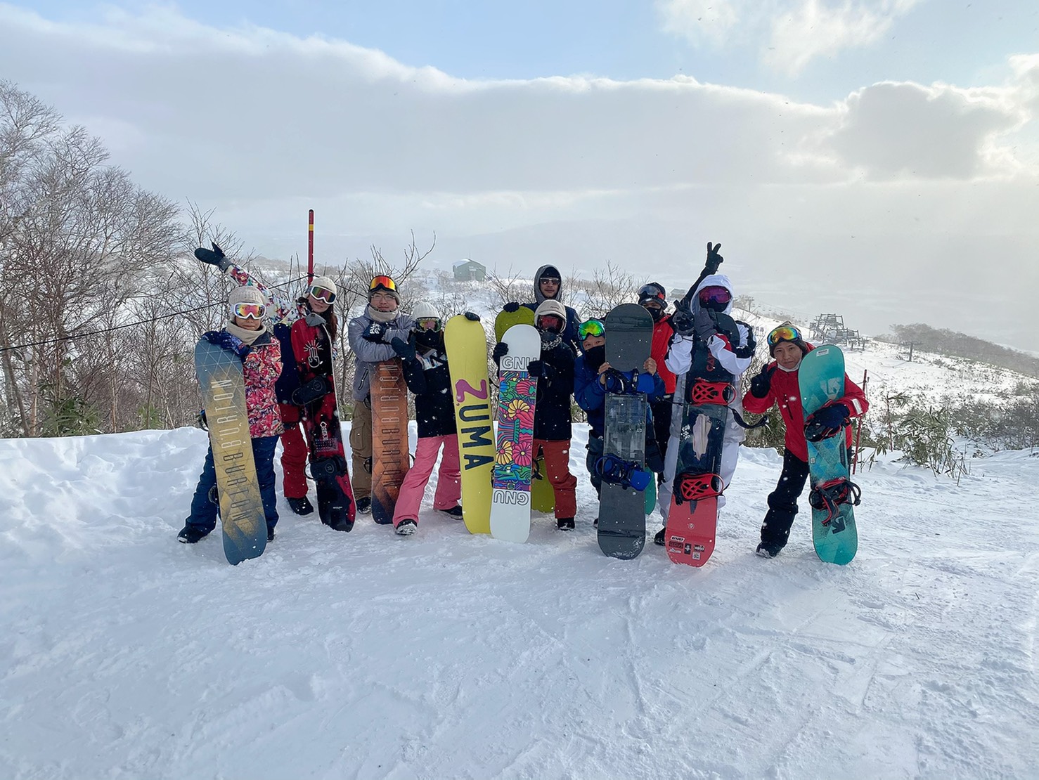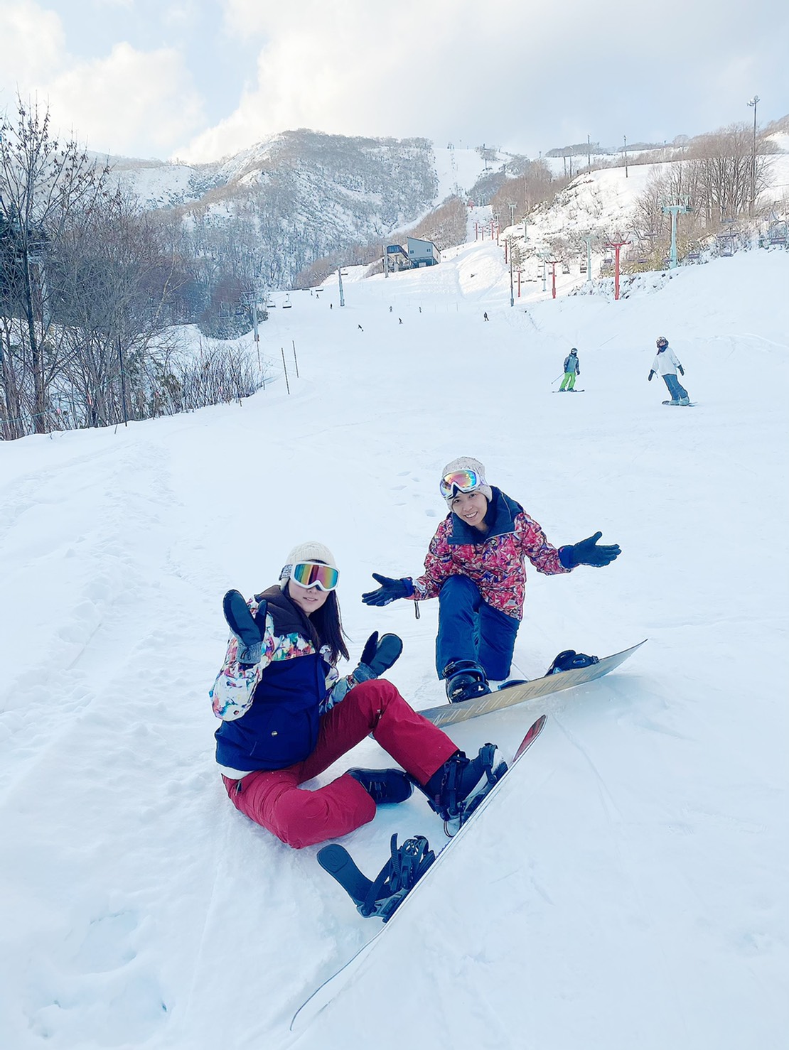 Everyone had snowboarding experience except me. I took a 4 hour snowboarding lesson to learn the basics of snowboarding before joining the group and snowboarding together. The teacher was Japanese and had more than 15 years experience.