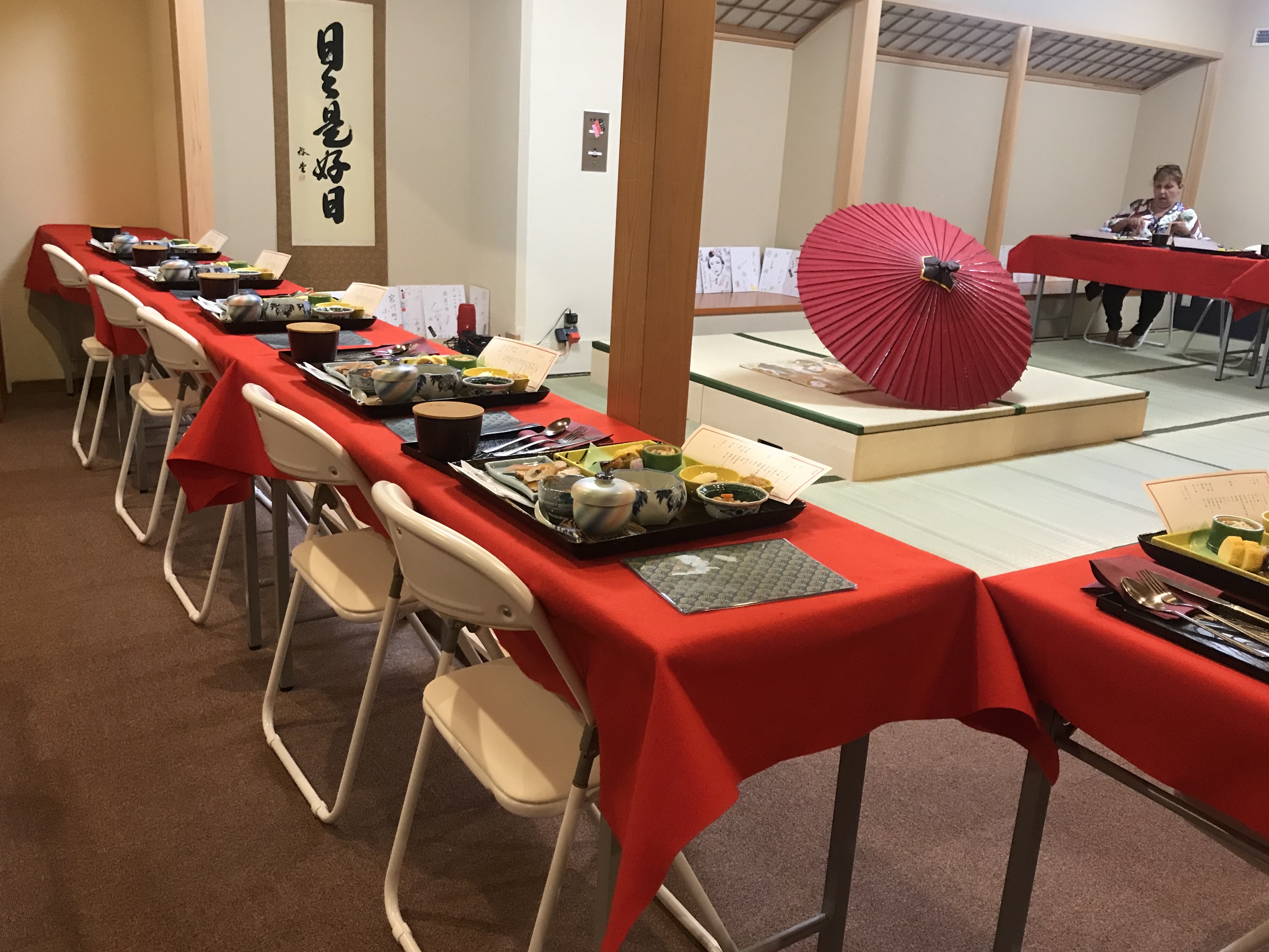 When you arrive, the staff shows you to your seat. The maiko can easily be seen from all seats. If you are lucky, you will get a seat close to the stage. Over the one and a half hour course you get to see the dance performance, have a questions and answer session, play games with the maiko, and take photos.