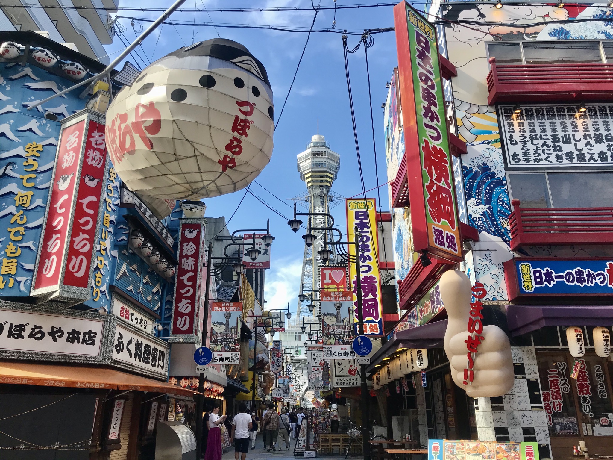 Shinsekai means "New World," and is located next to the Den Den Town area. The Tsutenkaku Tower is a landmark of Osaka. Now it is used to show the number of COVID-19 infections in Osaka. Tsutenkaku Tower was built to resemble the Eiffel Tower in Paris. There are many shops and restaurants. You should try kushikatsu - deep-fried meat and vegetables on skewers. Kushikatsu is a famous food in Osaka, and is sold at most of the restaurants in Shinsekai. You shouldn't miss stopping by and taking some photos with the huge puffer balloon. Behind Shinseikai connects to spa world where there are hot springs in the city center.