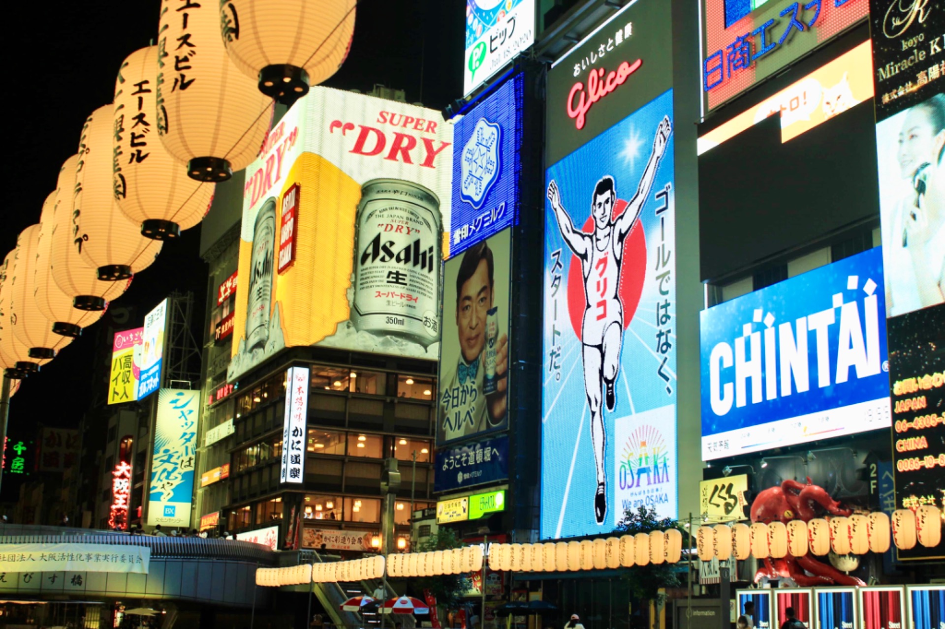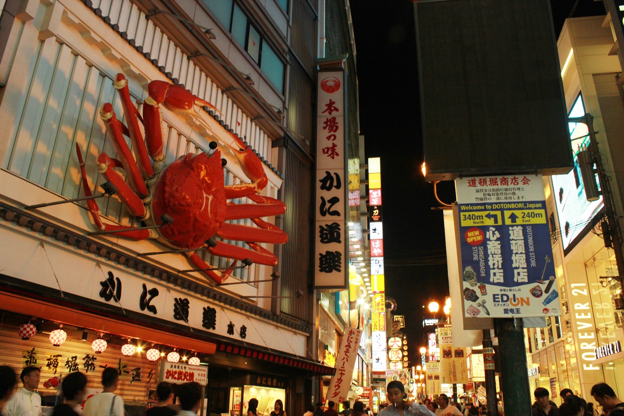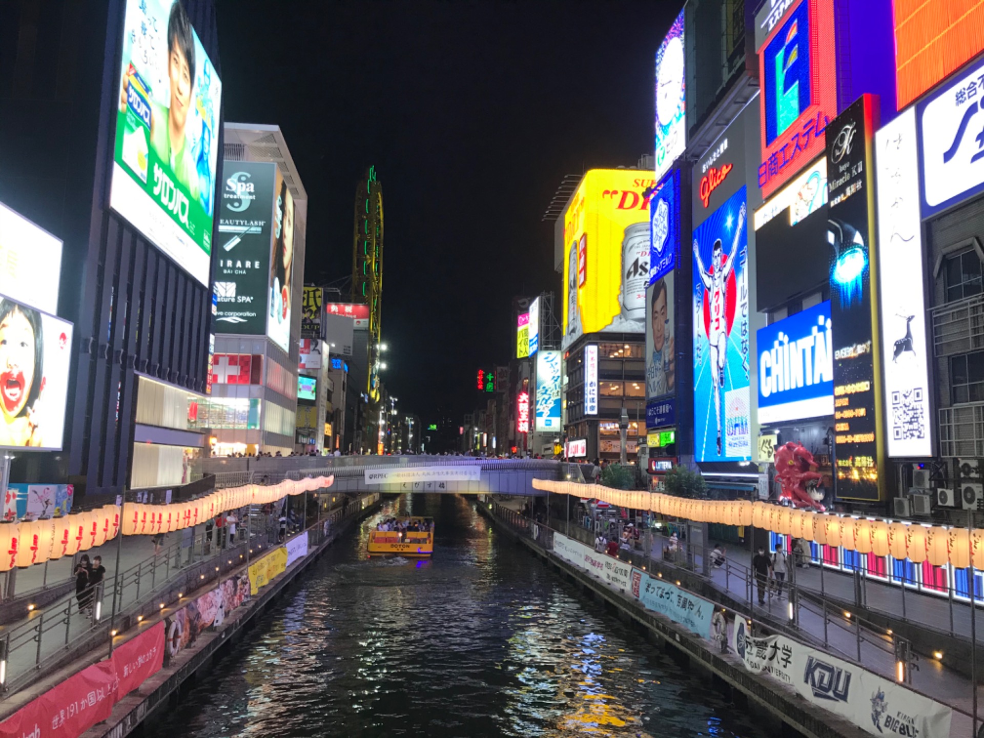 Namba and Shinsaibashi are separated by the Dotombori Bridge. Beside the canal is a Glico illuminated signboard, which seems to be a landmark of this area. Don't forget to take some photos with it.