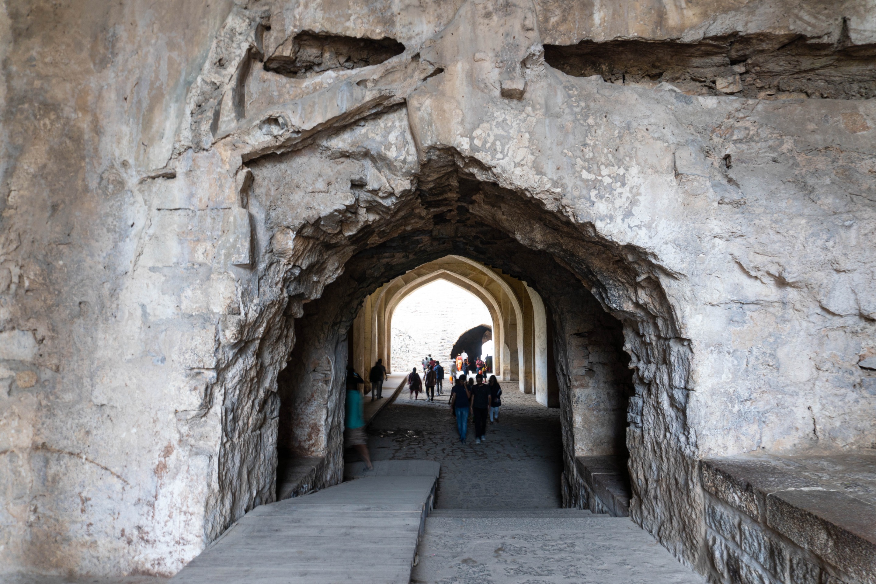 This is Golconda Fort in Hyderabad city of India. The fort was built around the year 1143 but it became prominent in16th century during Qutub Shahi Dynasty.