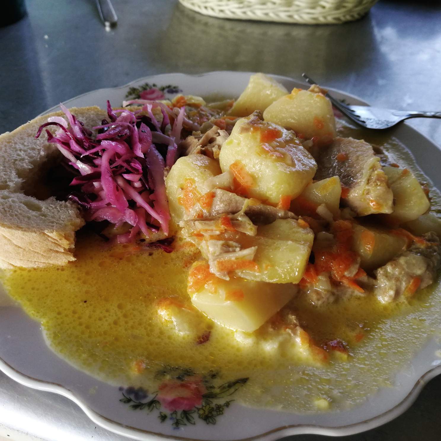 I was absolutely loving this rush of energy, the passion of this woman, pouring out her information to me. I asked if I could get my camera out, take a photo of the plate of salo and she thought I was asking for a photo of her. Without even pausing to consider it she went to the cupboard and brought out her best clothes, a blue mohair cardigan embroidered with pearlescent beads, from Poland she told me, then a different headscarf, one of the ones for best.