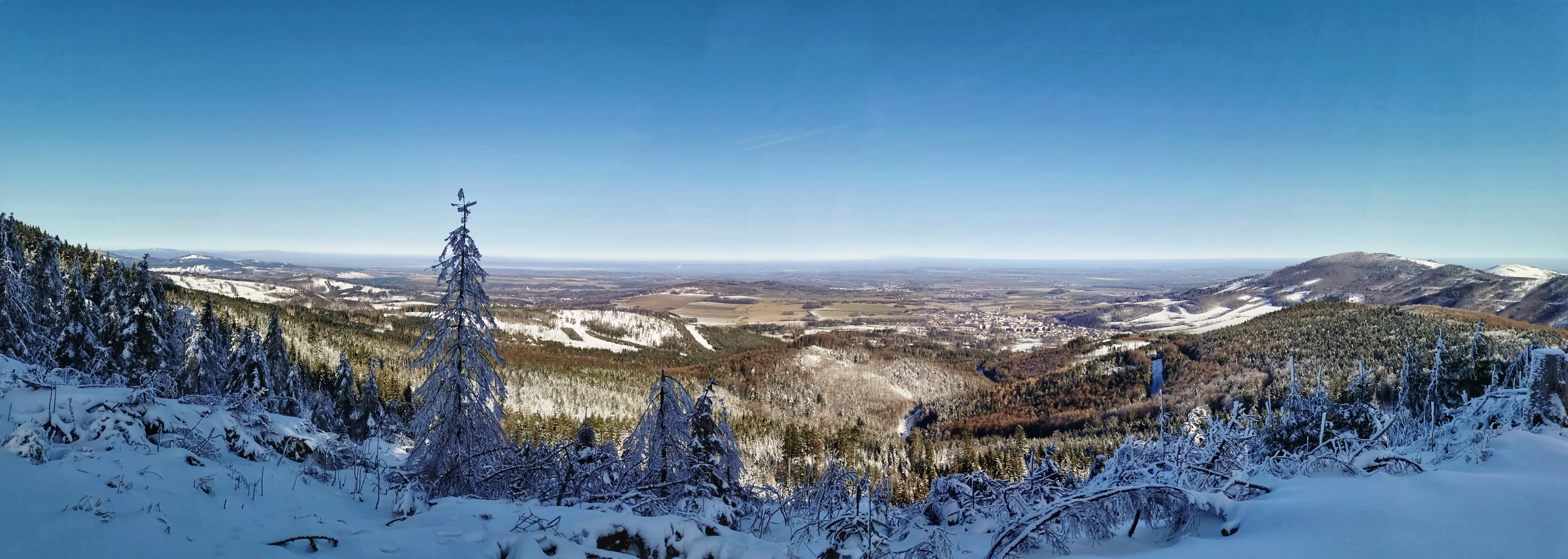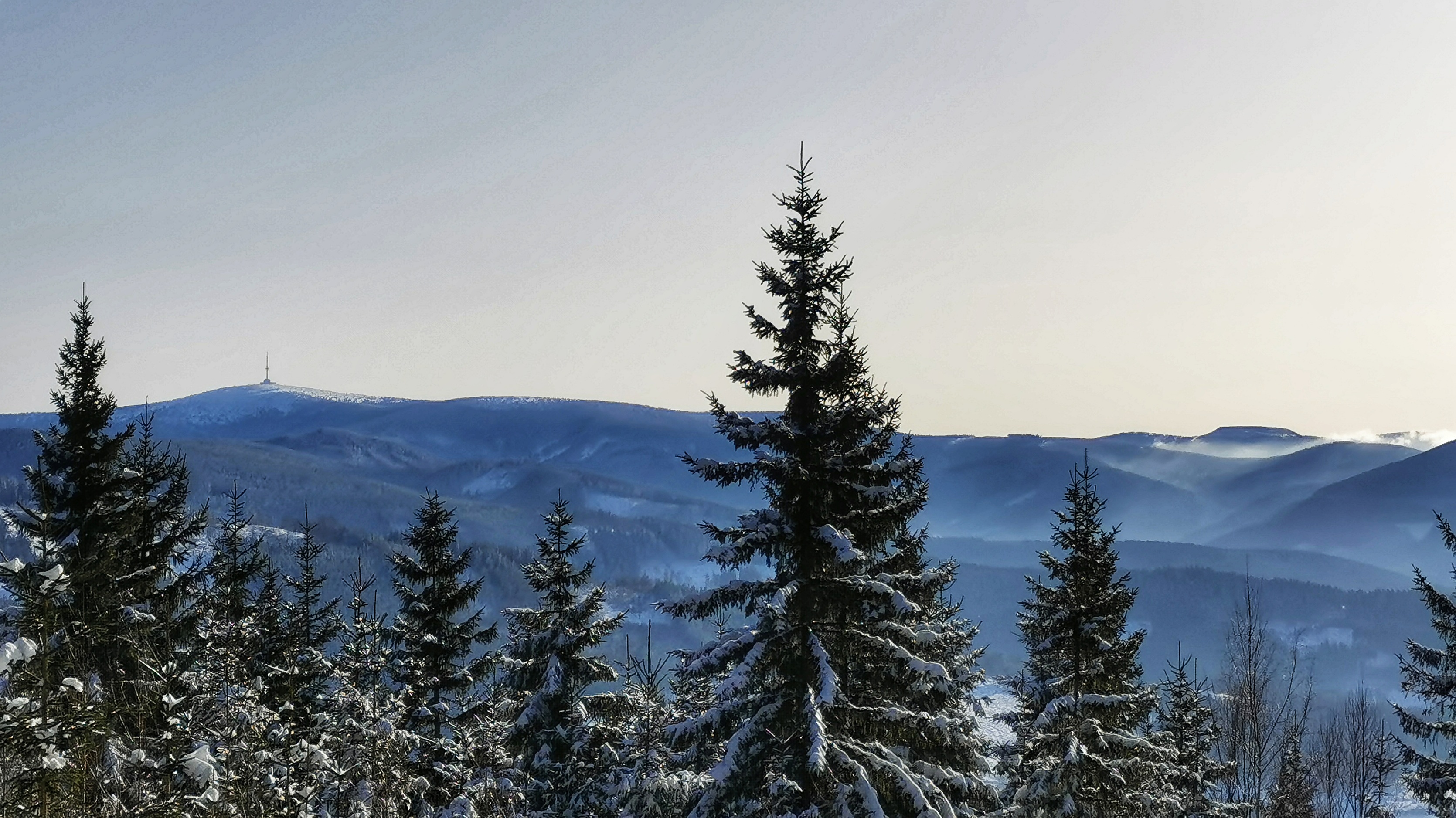 First magnificent view emerged at some 800m a.s.l. The right-hand side, the highest peak over there is Biskupská kupa with newly renovated and beautiful lookout tower. I had been hiking around there some other time, so at least a little spoiler: It is the first lookout tower in the mountains where I encountered they accept payment cards to buy tickets :) The rest of the panorama should be Poland.