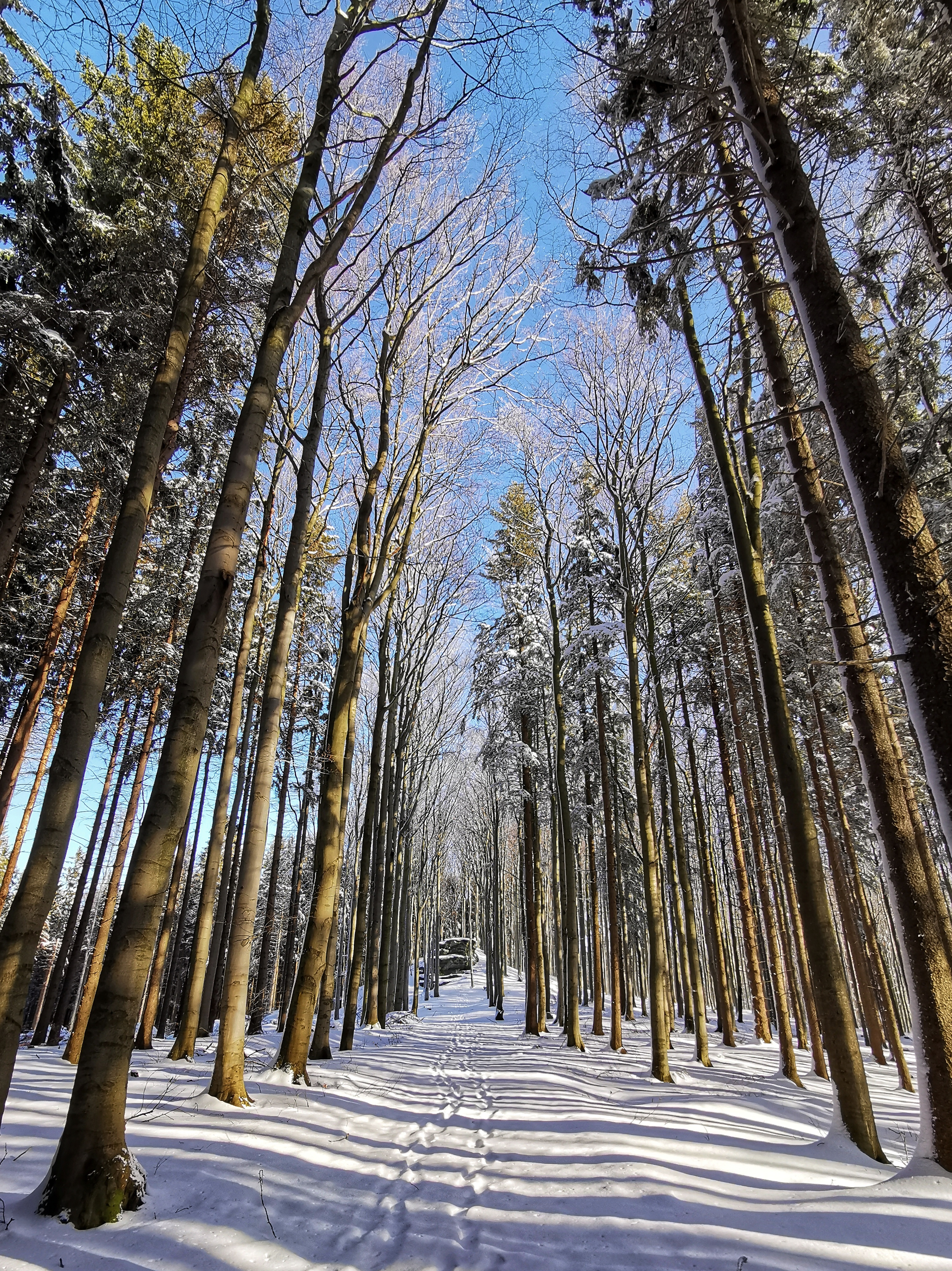 My intention was (and it always is) to avoid any deeper snow as I do not own a pair of snowshoes. So the highest Czech peaks were out of the question (until the snow melts down). Some 1000 meters a.s.l. sounded Okay. Yet there were parts of the journey with snow exceeding my ankles :-D