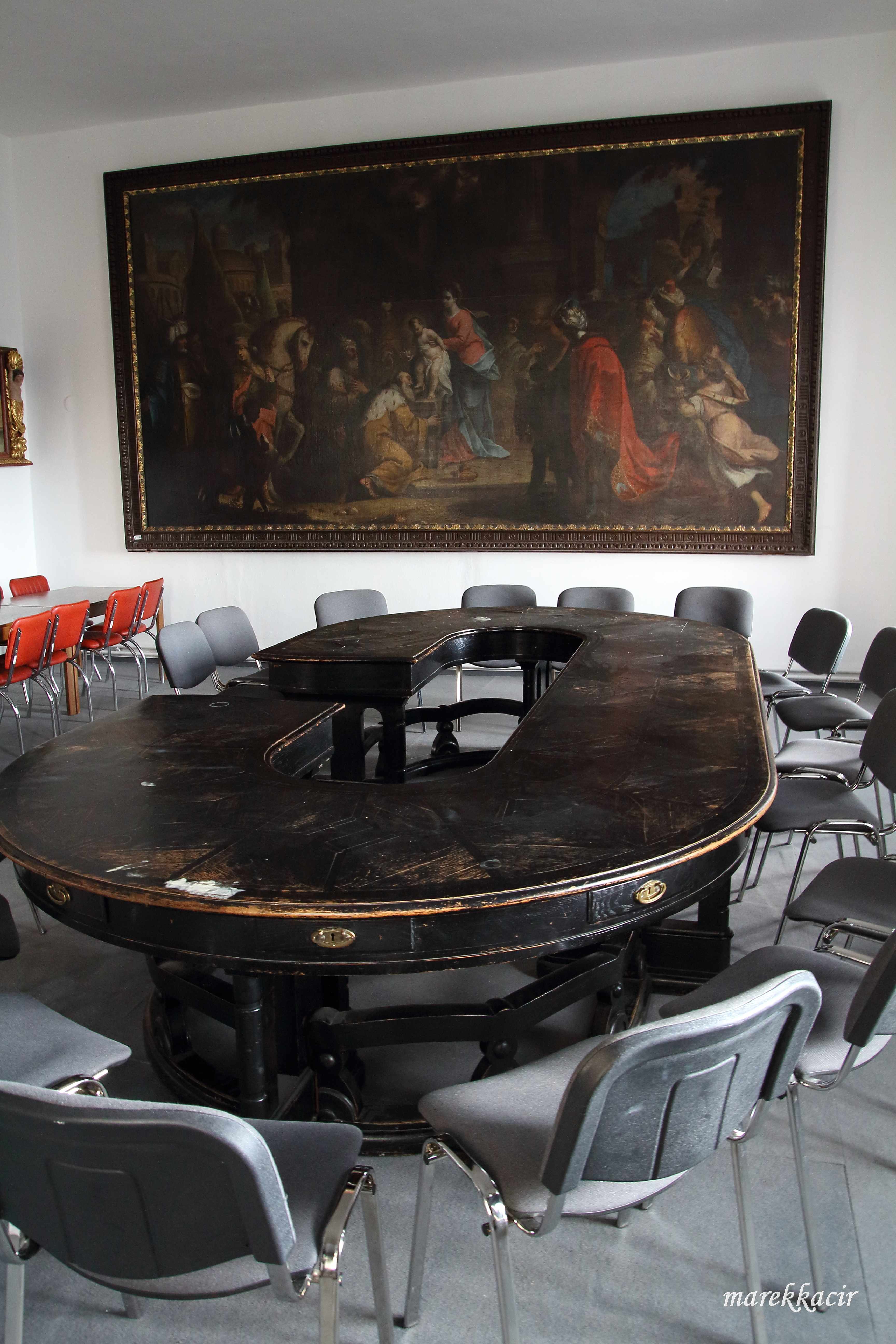 We entered the first room. This is where the interpretation began. He told us about the history of the monastery and the town of Šternberk. His storytelling was extremely engaging. It was obvious that he did not memorize individual things, but that he really understood what he was saying. He said it in a casual tone, but he wouldn't enjoy it at all. But the opposite was true, because during the show he asked us about three questions about history. He tested us normally.