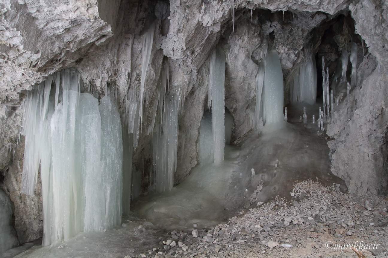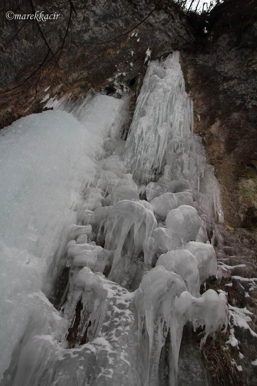 The winter was good for us in 2018 and my friends and I went on a winter crossing of the Hornád Canyon. Our journey started in Hrabušice, where we arrived by bus. Through the field we have reached the tourist route of the Hrdlo Hornádu . That's where our ice adventure began. We entered the river and after its frozen riverbed we entered the canyon.