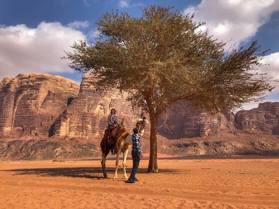 "Its familiarity does not diminish its majesty when you see it for yourself." Next, we saddled some donkeys and climbed 800 steps up to the Monastery, a temple carved into the mountain summit. Dotted along the route are many Royal tombs, which the 12-year-old boy in charge of our donkeys eagerly pointed towards. After a day of sightseeing, we drove for two hours south towards Wadi Rum. This is the spectacular desert that T E Lawrence described as "vast, echoing and godlike" in his book The Seven Pillars of Wisdom. A shaft of light broke through the clouds and swept across the dunes basking it in golden hues. It's been a hundred years since Lawrence and the Arab revolt that ended five years of Ottoman rule and also redrew the map of the Middle East.