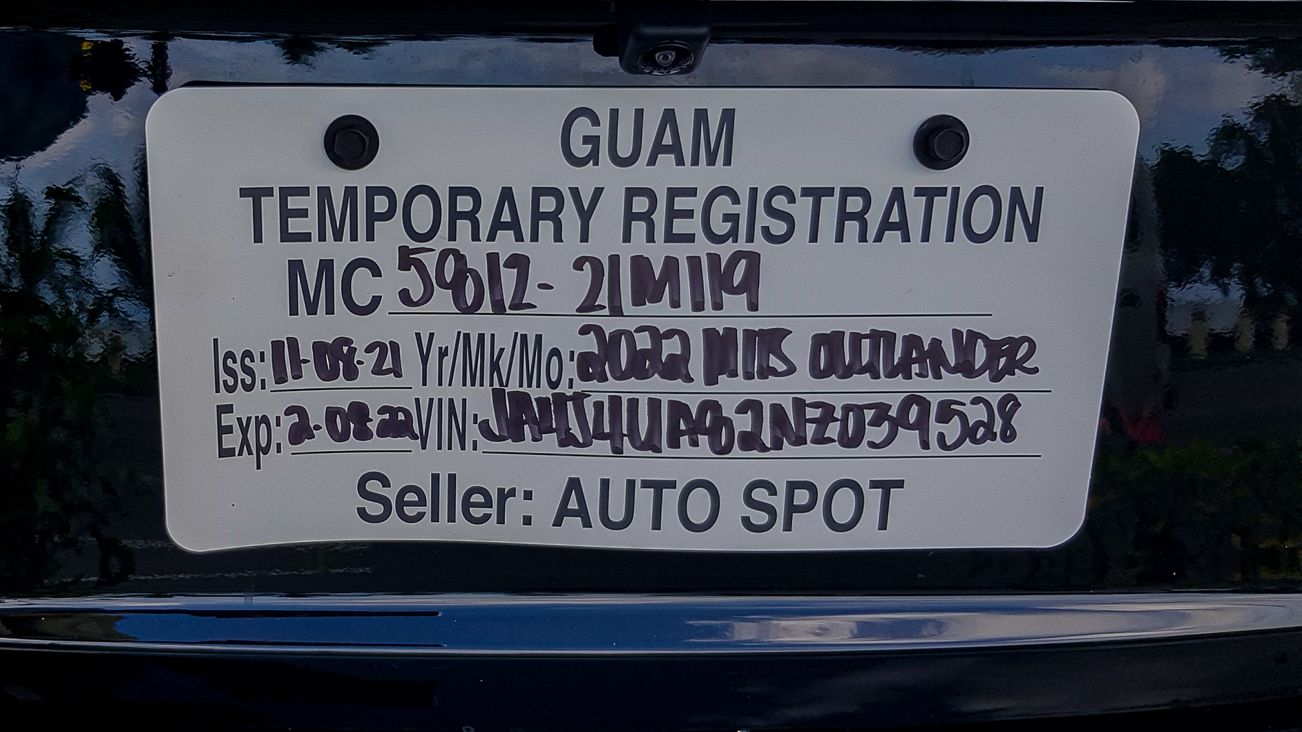 If you ever want to buy a car in Guam, I would highly recommend NOT buying one from Auto Spot. In my opinion, their after service care is beyond horrible. Want more proof? Look at my temporary plates, is that a mistake that should happen? I didn't notice it either, it was the window tint installer who did. Ya, the dealer didn't offer me the tint package, I would have gotten that too if they had. In case the thumbnail is too small, here's the picture again: