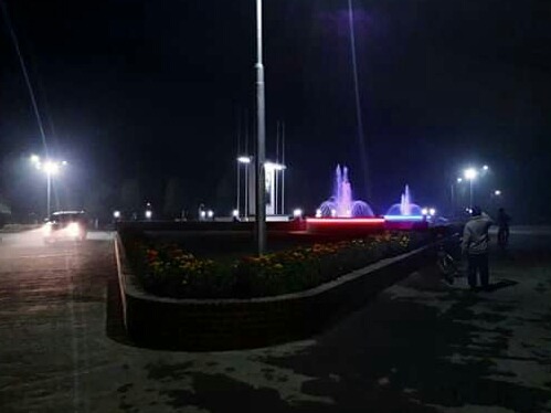 The nature of agricultural research is seen during the day and at night it is a different view.And decorated with different color lights at the forefront of agricultural research,And made a kind of shower in an artificial way,And next to the fountain, the lights of different colors make it look more beautiful and attractive when the lights go on.
