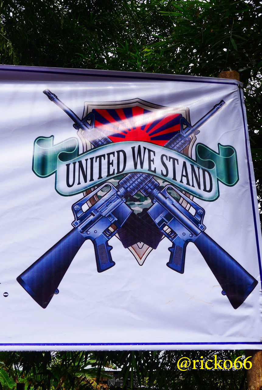 After having a coffee with the team and the general and captain good mood, there was a lot of activity in the camp compare to the day prior. We were aware that today is a big day and many civilian invited will come for a military parade followed with a conference. Many groups of people were arriving at the base, some were coming from surrounding villages other (the most) arrive by boat on the river even some groups coming from Thailand and from the other side of Burma. Before heading to the parade the general offer me to record an interview of a veteran hero of the war. I took my camera and we conduct the interview on the terrasse of a little bamboo house. The veteran was a very old man that have join the army in 1949 when he was 17 years old, this man have seen the entire war and he has been on most of the big battles. It was very impressive to learn from the mouth of this veteran about how they have been fighting for so long in the jungle, about how he escaped the custody of the Burmese army. During the entire interview the general was translating both way. Then the time for the parade arrive so we warp up the interview and walk in the direction of the big field with many officers and another general. As we arrive to the big field we passes under a big sign with Karen the 4 principles for freedom by Saw Ba U Gyi (the founder of the KNDO the Karen National Defense Organization) and a design with the Karen flag with two M16 gun crossed and the slogan "United We Stand" behind the sign were 400 to 600 civilian people from many places in Burma and Thailand and on the side were many soldiers some with the parade clothing and some just as usual camo style. Then we walk to the other side of the field where only a little group of people were waiting, there was maybe 50 chairs for us (the VIP's) to seat among the officers. About 5 minute after we sat down all the soldiers in parade clothing took place on the field in 3 group of 24 soldiers each than they presented their weapon to their officer and the other general go to stand behind a desk and start a speech for the commemoration of the day "The Martyr Day" I can't tell you what he has said but I assume it was all about all the people who gave their life in this 72 years war. After the speech the parade started on a very military song than some girls wearing the white traditional tunic (only for non married girl) go to stand in two column and as the soldiers walk in between them they present a gift and some flowers to each soldiers.