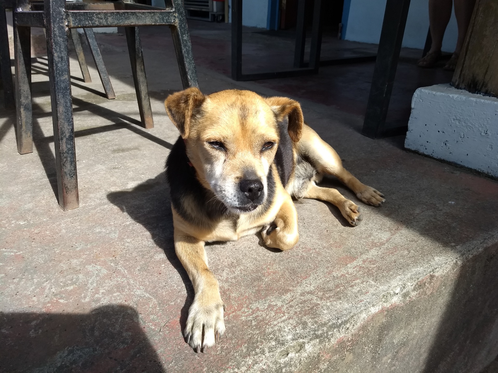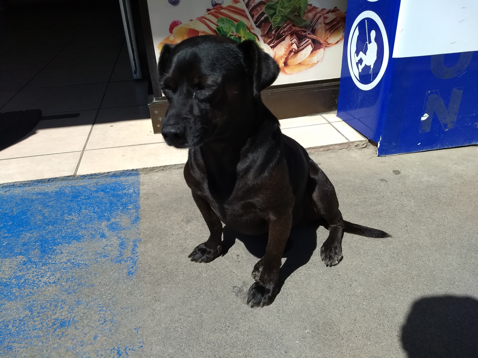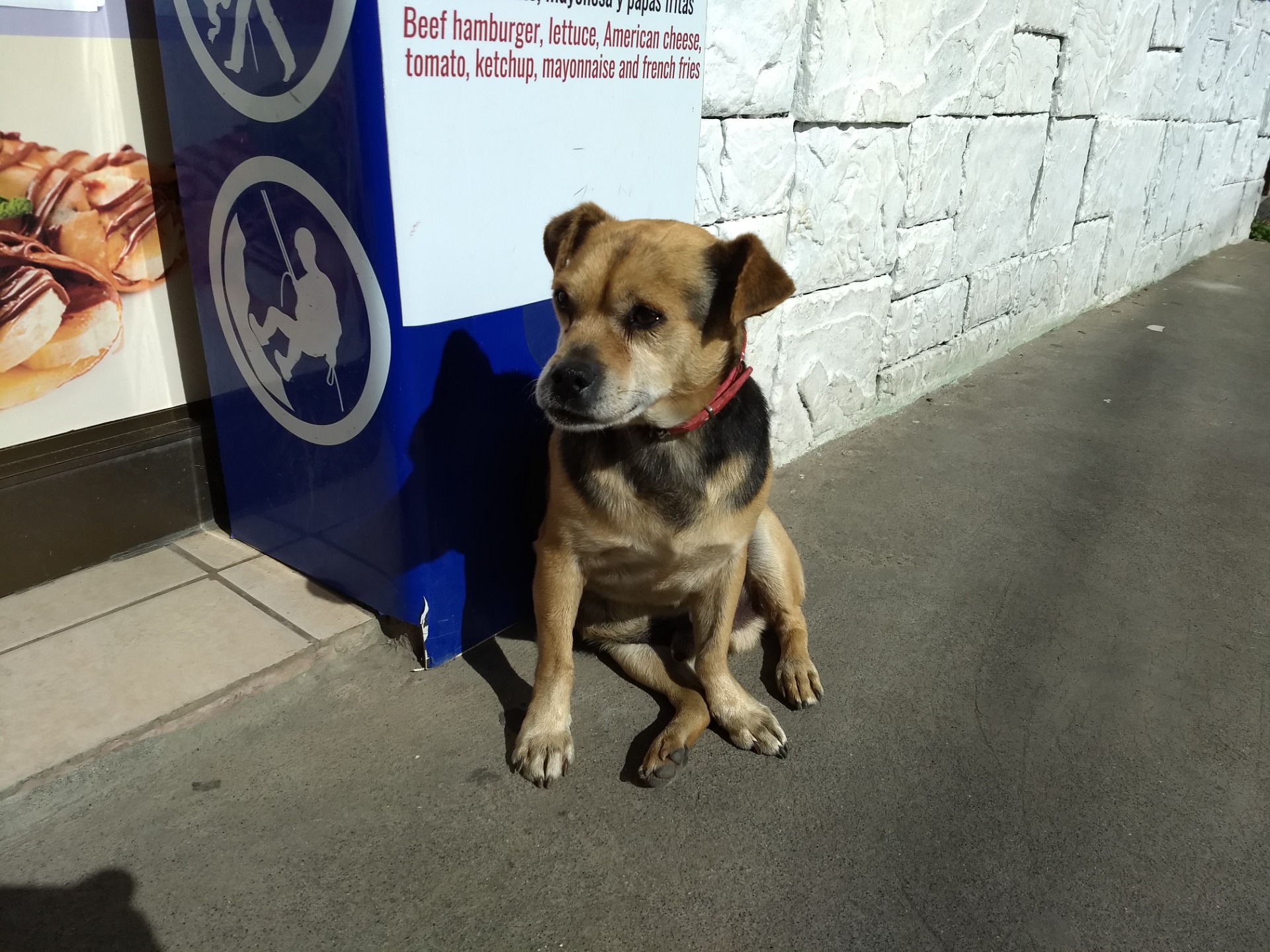 This dog didn't have a name tag. He barely paid attention to me. He must have known I didn't have food. After all, I was only passing by, not even entering the restaurant.