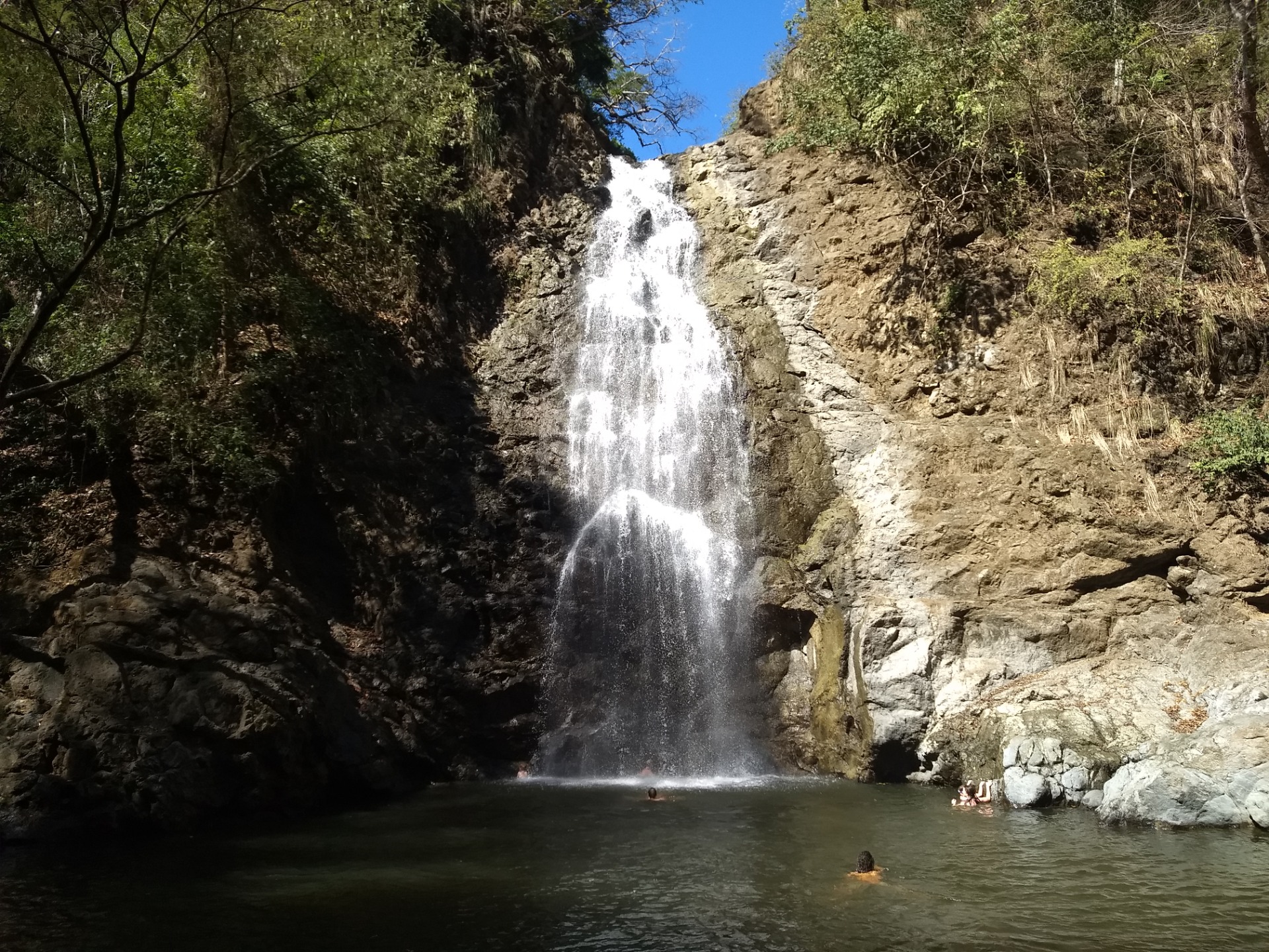 The one hike you can't skip is to see the Montezuma Waterfalls. The trail head is on the way to town, maybe 100-200 meters from the hostel. You must cross the river bed rocks after the first small waterfall. Then look for a trail covered by tree roots. The waterfall has a swimming hole. I jumped off the raised area on the left hand side. There is another upper waterfalls and yet another even higher one. However, I was unaware of this at the time.