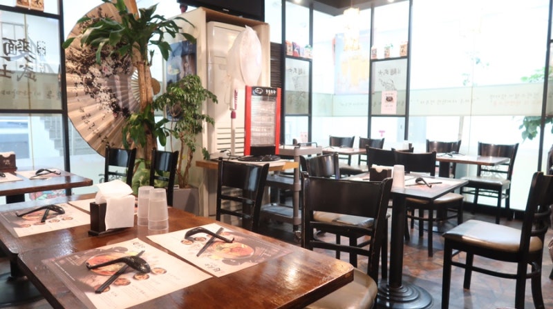 It is not a large space, so the space between the tables is not wide