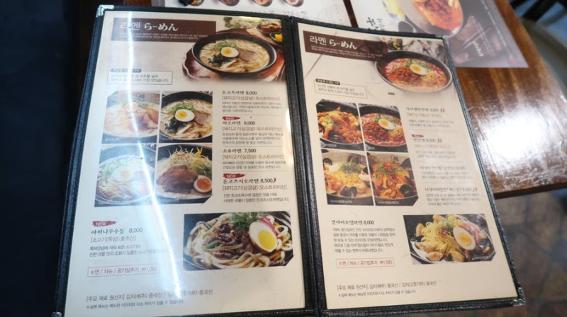 There are many different menus from ramen to rice bowls