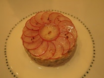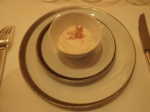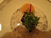 Salmon flavor definitely feel could had amuse bouche. Salmon flavor of the cream over the horseradish finely chopped sun that was laid .