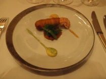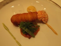 Second Langoustine with a potato roll with fried it . The two sauces around are Yuzawa Wasabi . Ever continuing to eat this Langoustine among the most was delicious . Or , do a photo to remember it And there so I think that might be it . Keeping a record also seems to make sense . Anyway , eojjina smooth paper was prepared . It also tasted well with the surrounding potatoes .