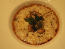 Day from food of most delicious was the frog risotto . (Lobster risotto is not the way , the frog risotto is why the expression 'm awkward . Blah ) of the frog back legs . Garlic Slice one thinly raised itneyo . Around the truffle is sprinkled there . The expressions overlap, but this risotto also It might have been the most delicious risotto I 've ever eaten . In front of dishes and a risotto with only two kinds of visits worth enough that be considered enough to remember memorable it was delicious .