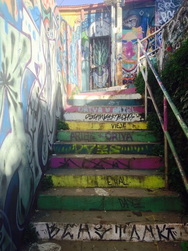 When studying the history of graffiti, the roots can be traced back to poor urban neighborhoods. Specifically, “Fraught conditions of urban communities gave rise to graffiti, where the majority of artists were youth that were “victims of urban renewal schemes and highway building that took place in the middle of the last century” (Lewisohn 7)” (Gleaton 2012: 9). The graffiti movement was a way for these disenfranchised youth to reassert their own rights in public spaces and in their homes. However, when walking around Valparaiso, it is apparent that most of the graffiti pieces are in well-known cerros alegre and concepcion. These cerros are the most wealthy and safe of the city, yet they host the most street art on their walls. This is contrary to the historical rise of graffiti that was originally a response of the poor against the government and big businesses who were controlling their lives. This piece can be found in cerro lecheros, one of the poorer cerros in Valparaiso. It was created as part of a project called “Valparaiso en Colores”, which is aimed at bringing the artform back into the poorer cerros in order to create a safer and more community-based environment.