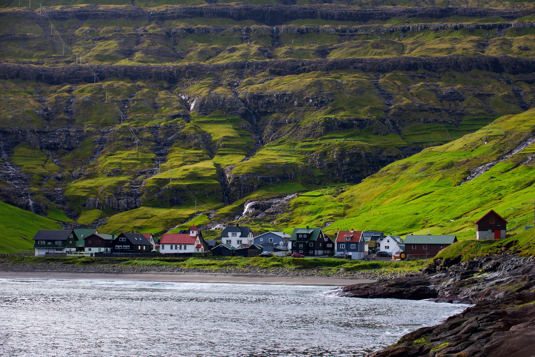 The name of this village means "Ravine" in Faroese. Located in the north of the archipelago, the village is indeed crossed by a spectacular flaw.