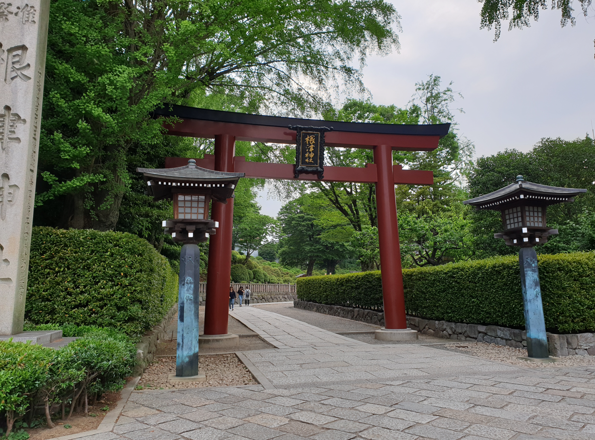 So we found a pretty historic shrine not too far from Kawasaki which had some pretty cool features worth checking out! Since we were in Japan I felt like it was necessary we visit a shrine at least once. And after some Google searching and walking, we arrived at the main gate of Nezu Shrine!