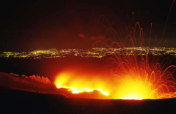 En efecto @popurri y lo más curioso es que provoca muy pocos daños. Es más lo espectacular que lo peligroso. Incluso se cultivan viñedos con uvas de muy buena calidad a los pies del volcán.