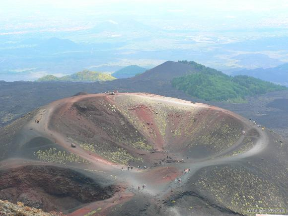 round the craters, the lava flows confirm the incessant activity of the volcano. Today the Etna volcano, which dominates the entire province of Catania, looks like a huge black cone (white in winter), visible from 250 km away.