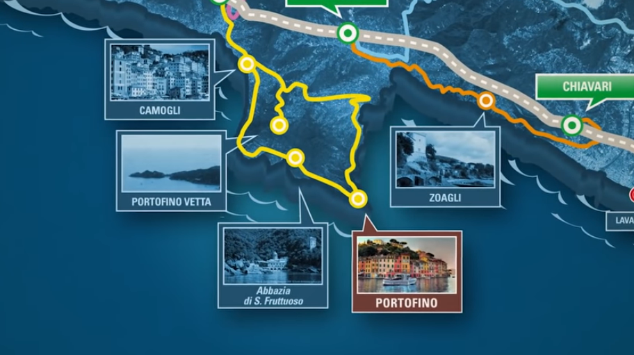 The promontory of Portofino divides the Gulf of Genoa from the Gulf of Tigullio (also called Golfo Guglielmo Marconi in honor of the first radio experiments carried out here by the Bolognese inventor), on whose banks lie tourist centers and world-famous seaside resorts.