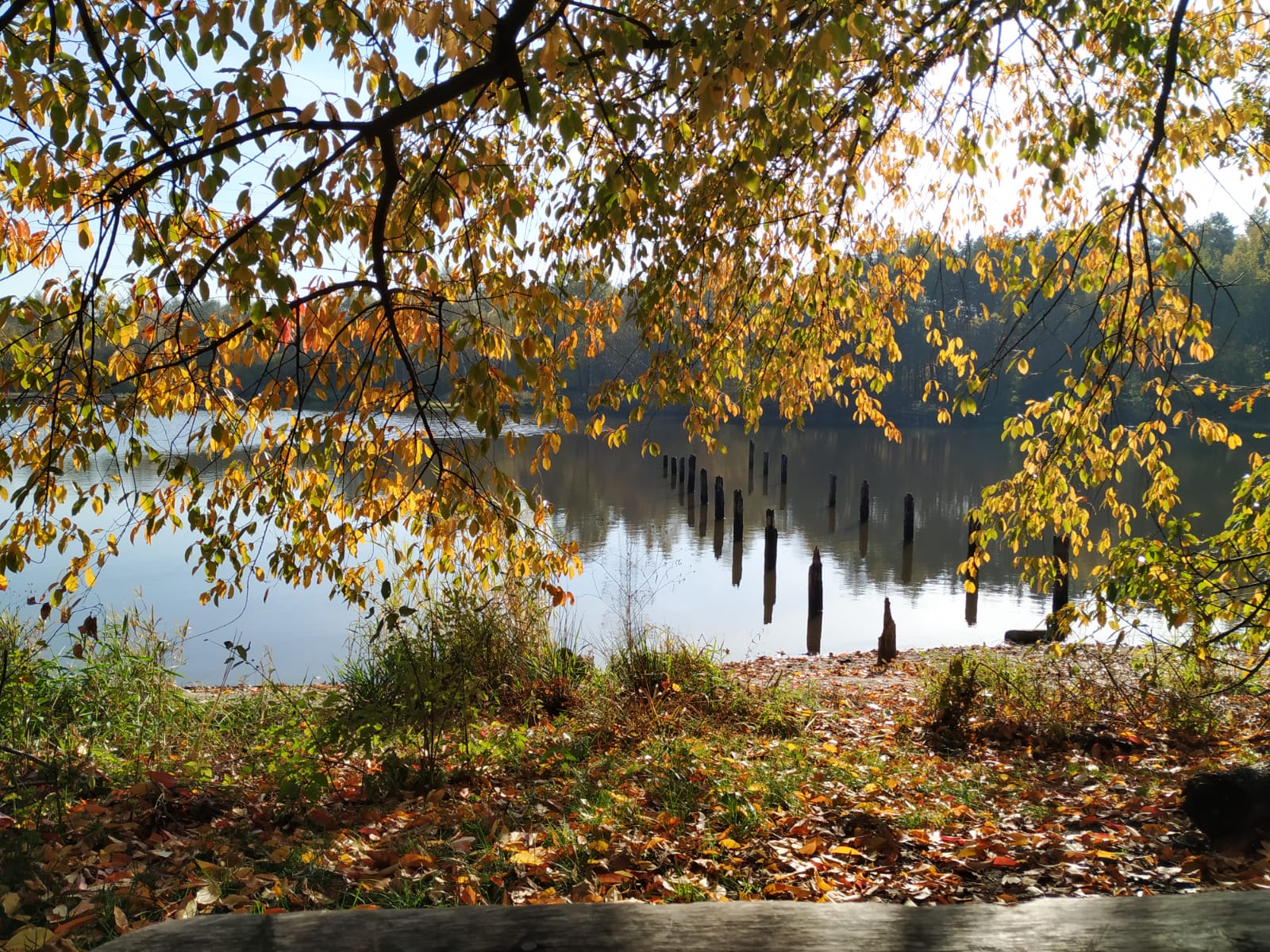 After our dogs are satisfied with their snacks and play time, we decided to go back since it's getting late and the temperature just keeps getting colder! We go back through another part of the forests which exits on the other side of "Starganiec". On this side, there are small wooden chairs and huts for people to hangout and probably cook some BBQ or just enjoy the day. Before we got back to our car, we sat a few minutes and enjoy the view from one of the wooden chairs.