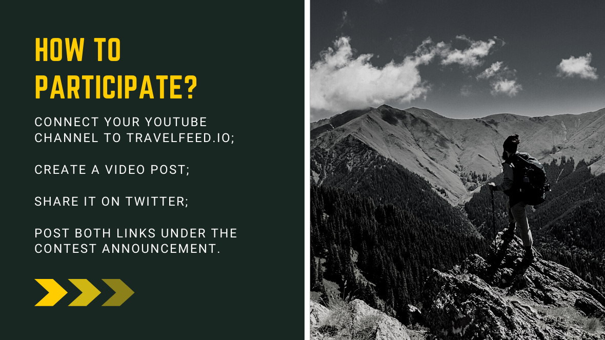 4. Post the link of your http://travelfeed.io video post and the link of your Tweet in the comment section under this announcement. Both the article and the comment must be posted using Travelfeed.io.