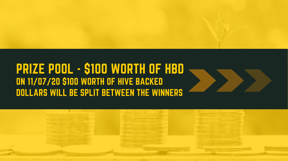 1. The Total Prize Pool for this contest will be $100 worth of Cryptocurrency! On the last day of the contest, $100 will be used to buy as much Hive Backed Dollars (HBD) as possible.