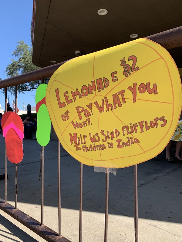 We arrived early enough to have time to find a place to sit and have some lemonade provided by a nonprofit that sends sandals to people who need them.