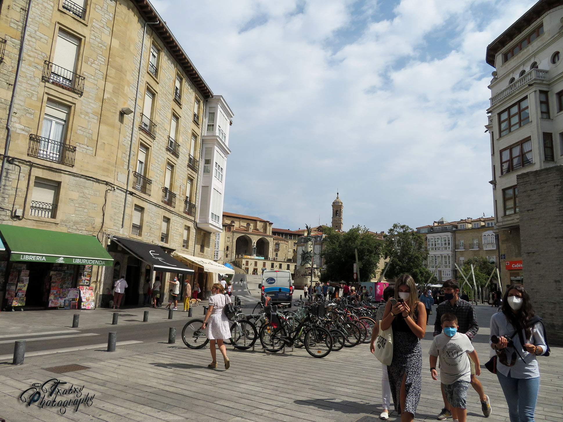 In five minutes we are in the square in the very center of the heart of Vitoria