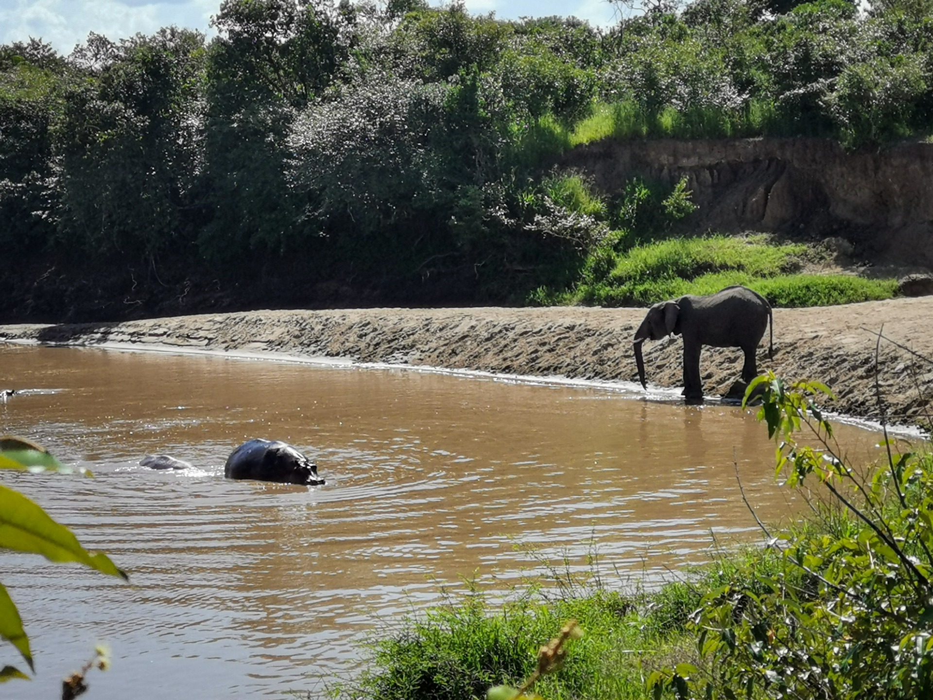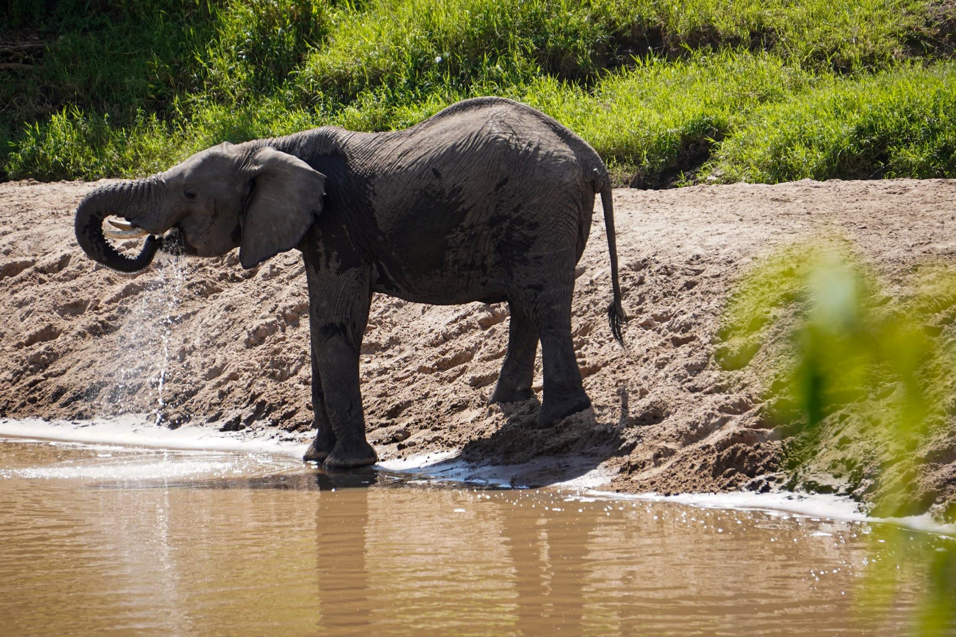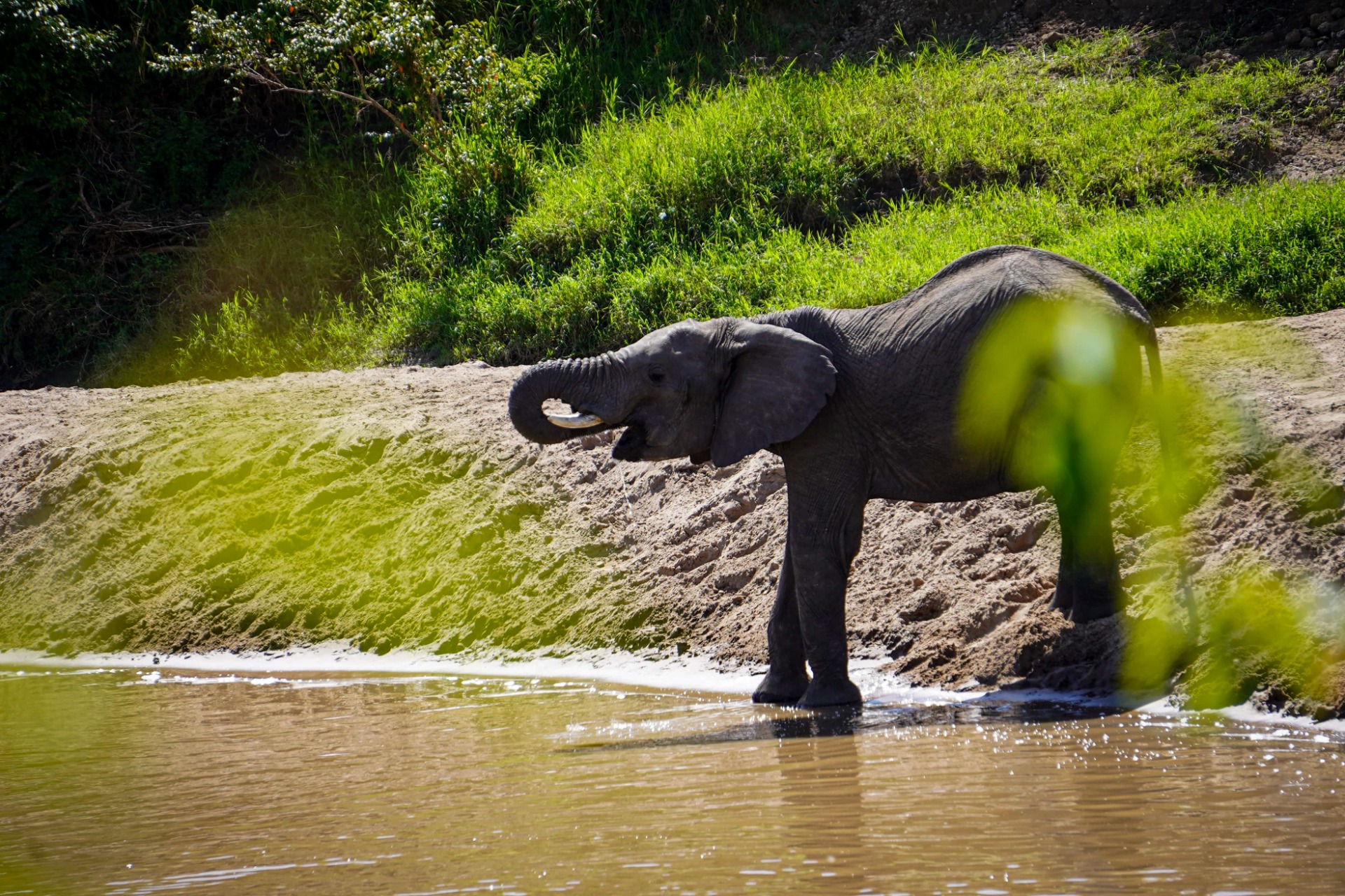 And any river or waterhole you're sure to find some wildlife. Here we found this elephant having a drink which scared the hippos that were relaxing in the water.