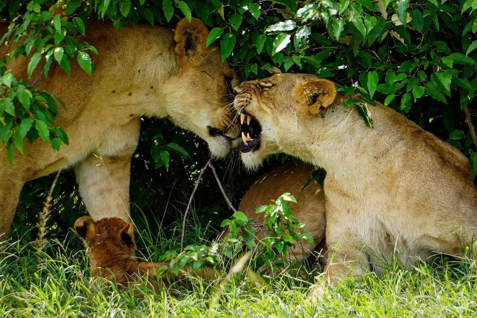 When in a national park with wide open plains, your best bet to spot lions is in the bushes. This is where they often get some shade and are just relaxing.