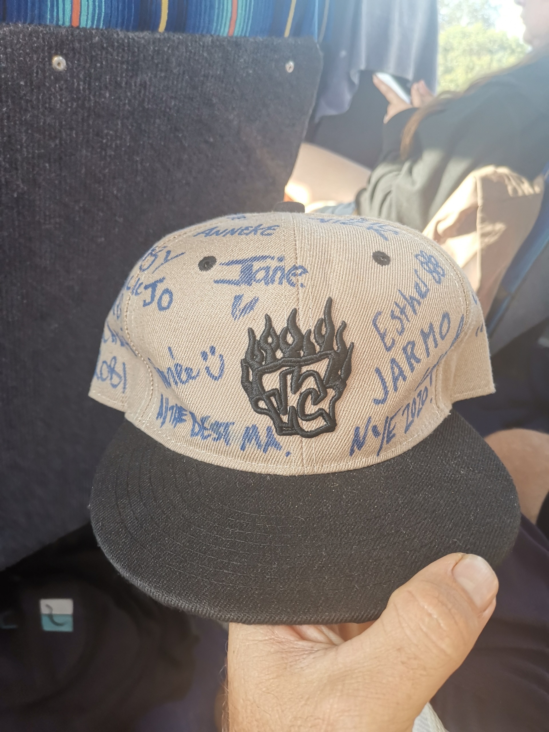 We donated a hat that we all signed to the bar.