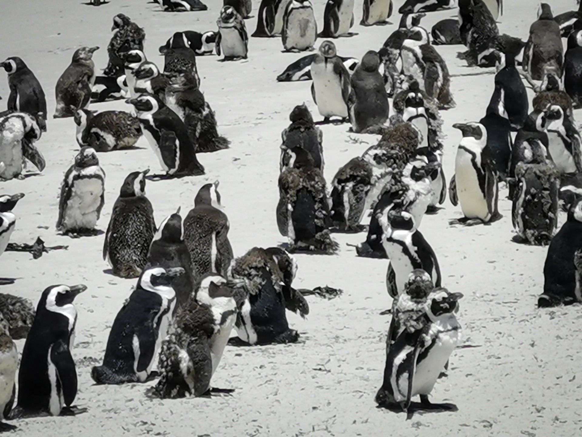 While we were there, all the penguins were moulting and growing new feathers. So they have to stay out of the water as they are not waterproof while they moult.