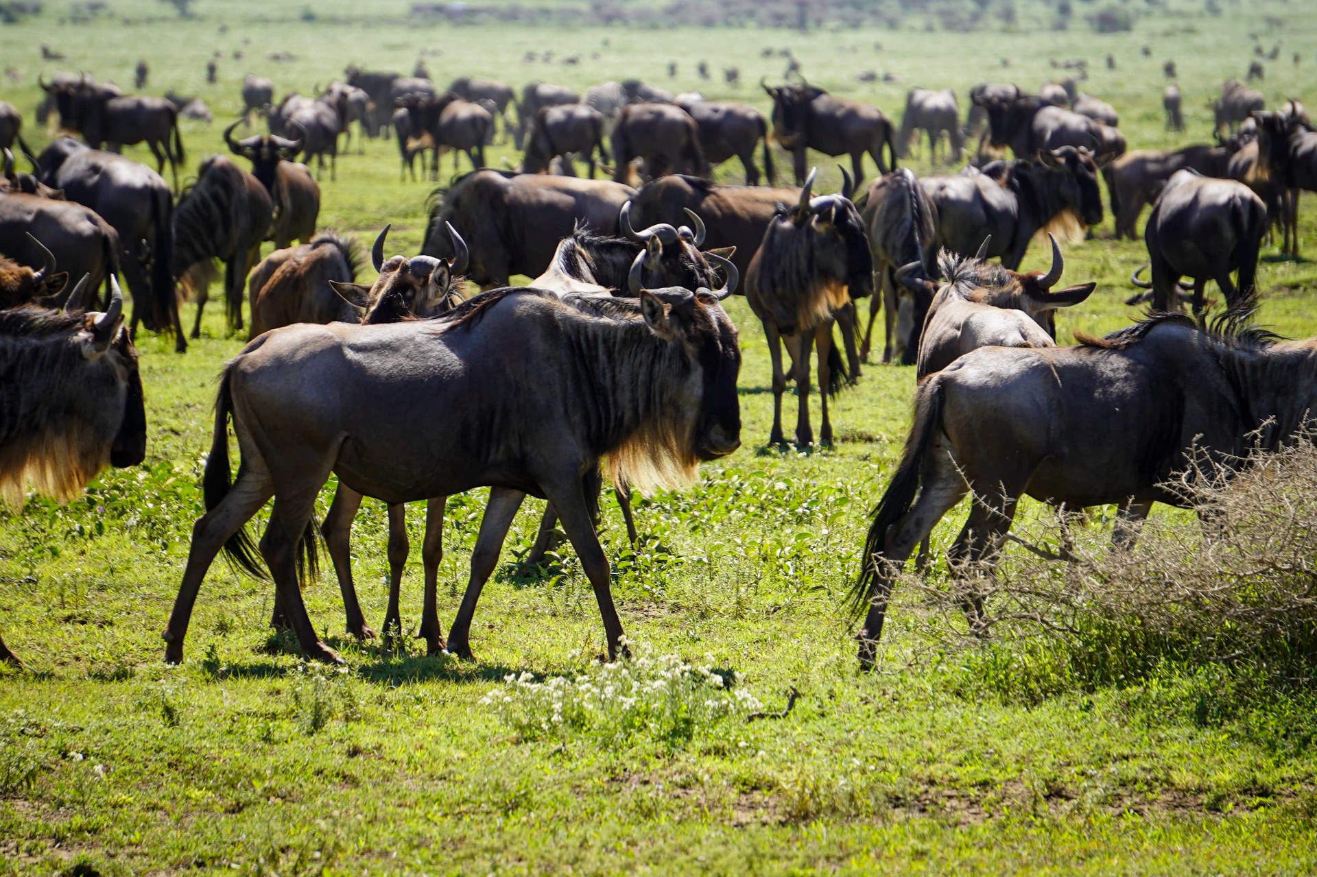 It was the end of the great migration and the wildebeest were all hanging out here to try and get some action. As the breeding season has just begun.