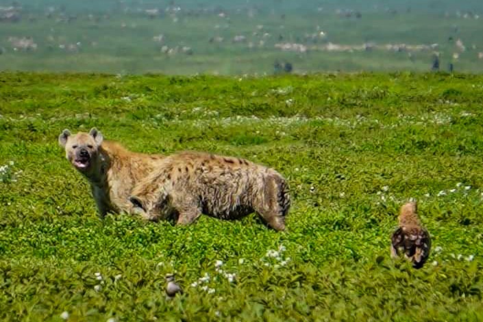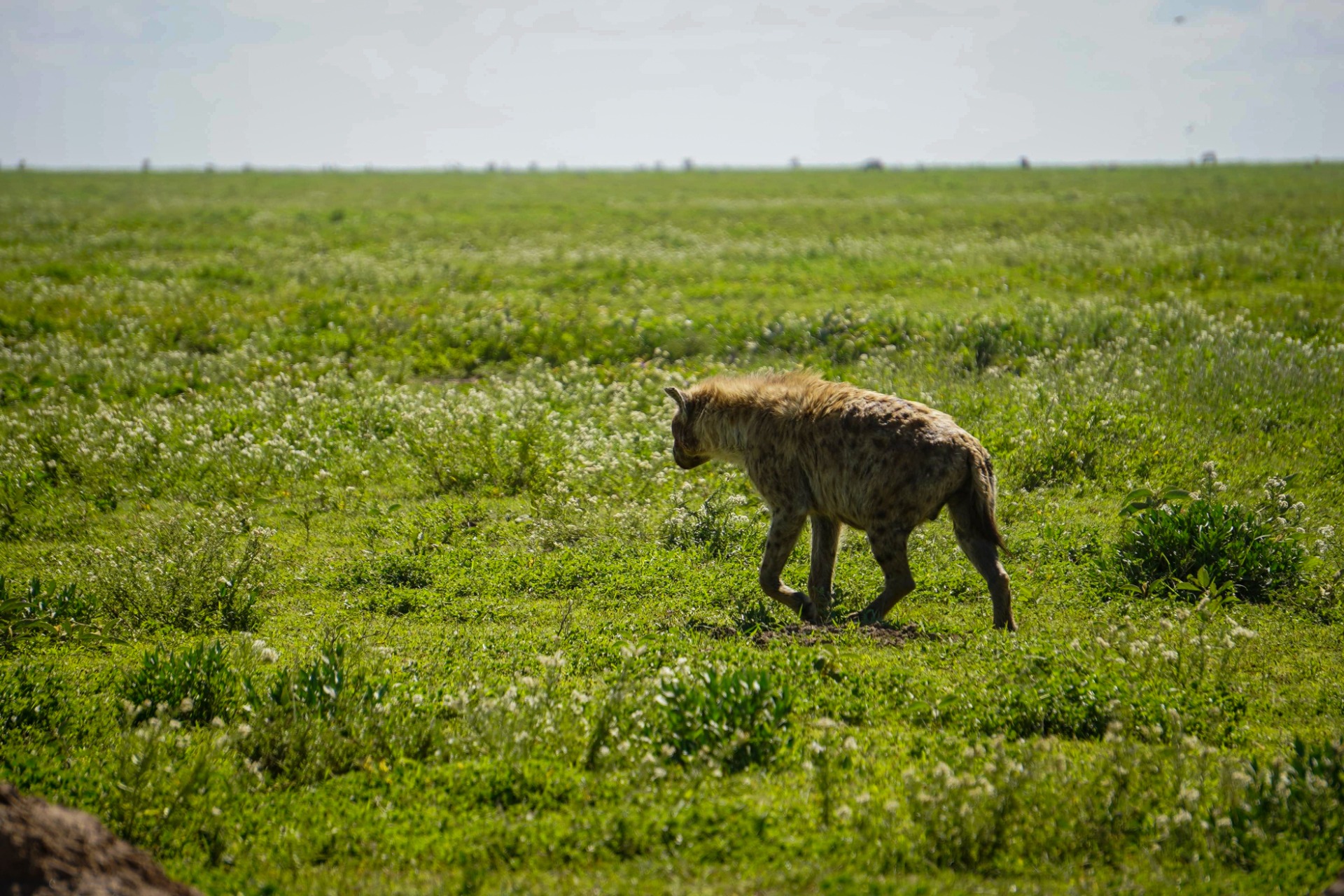 After a while we spotted two hyenas feasting in the plains. Maybe a wildebeest stumbled in and got caught.