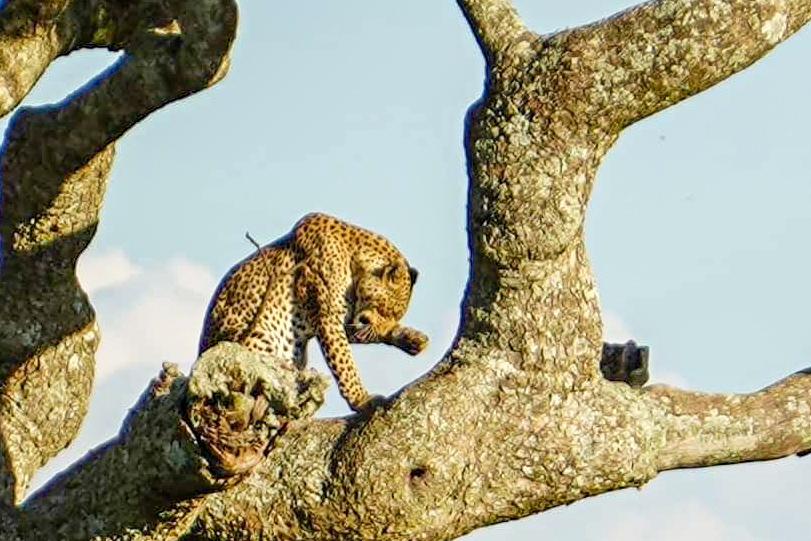 As we got closer to the trees we saw some movement and there it was! We finally spotted the illusive leopard!!