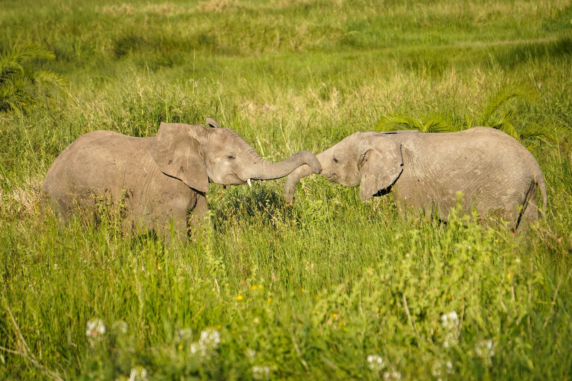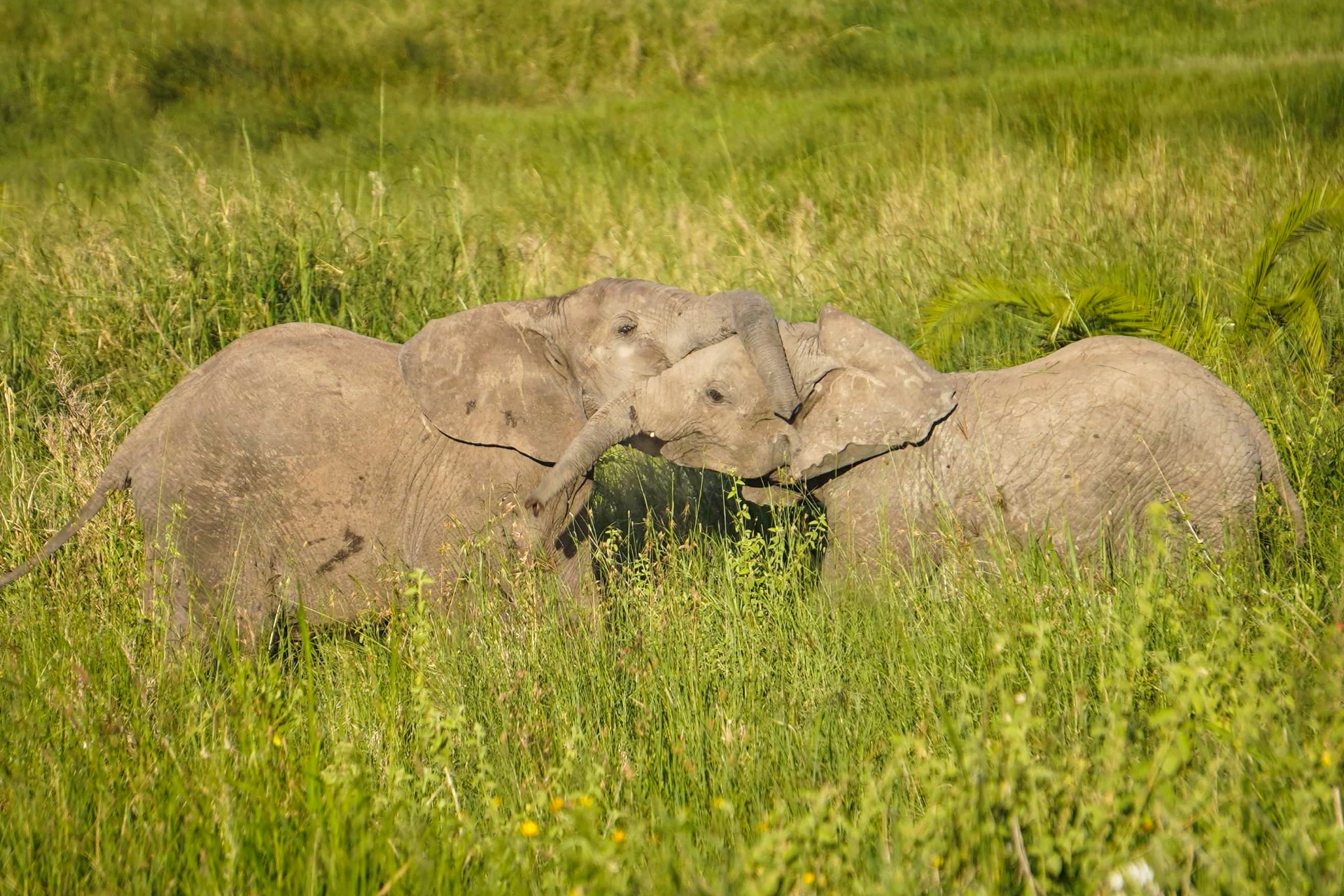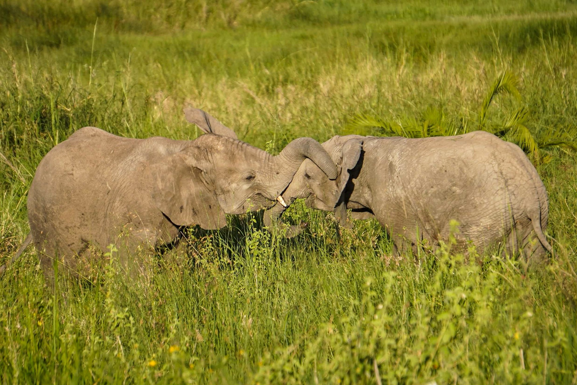 In the herd there were two baby male elephants that where practising their charging moves on each other.