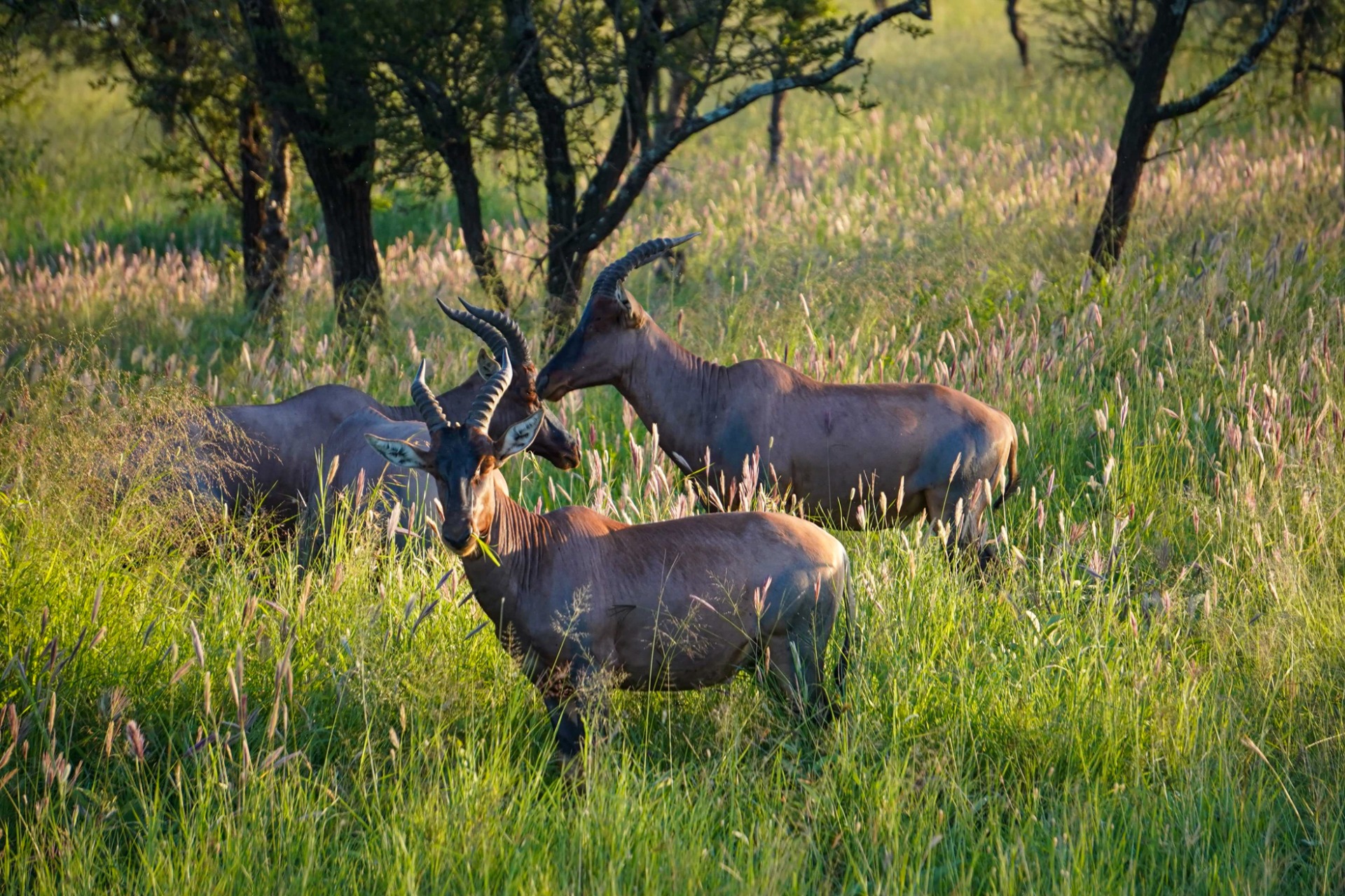 A squad of hartebeest were having a feed as we drove past them.