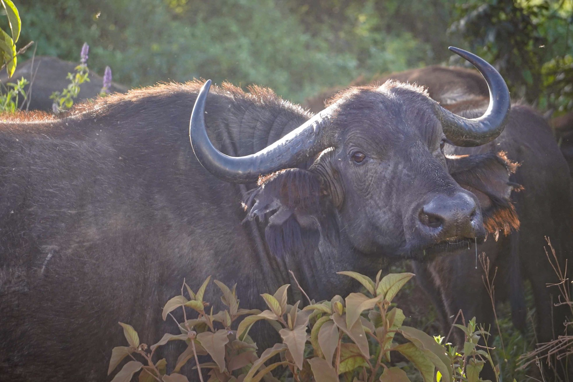 As we drove along the edge of the crater it wasn't long before we spotted the first of the big 5. This herd of buffalo blocking the road.