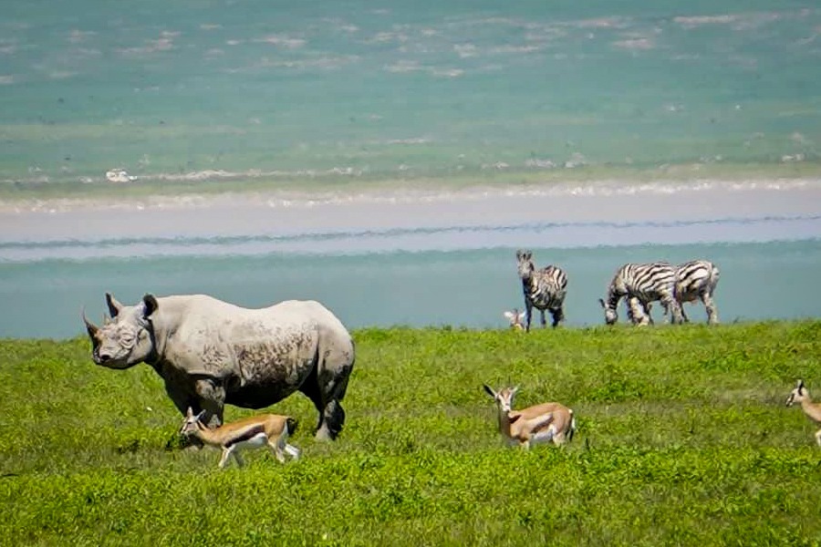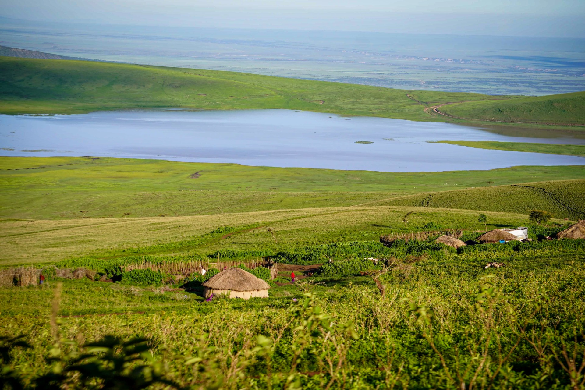 The Ngorongoro Crater expands over 8,292km2 and has a huge lake in the middle.