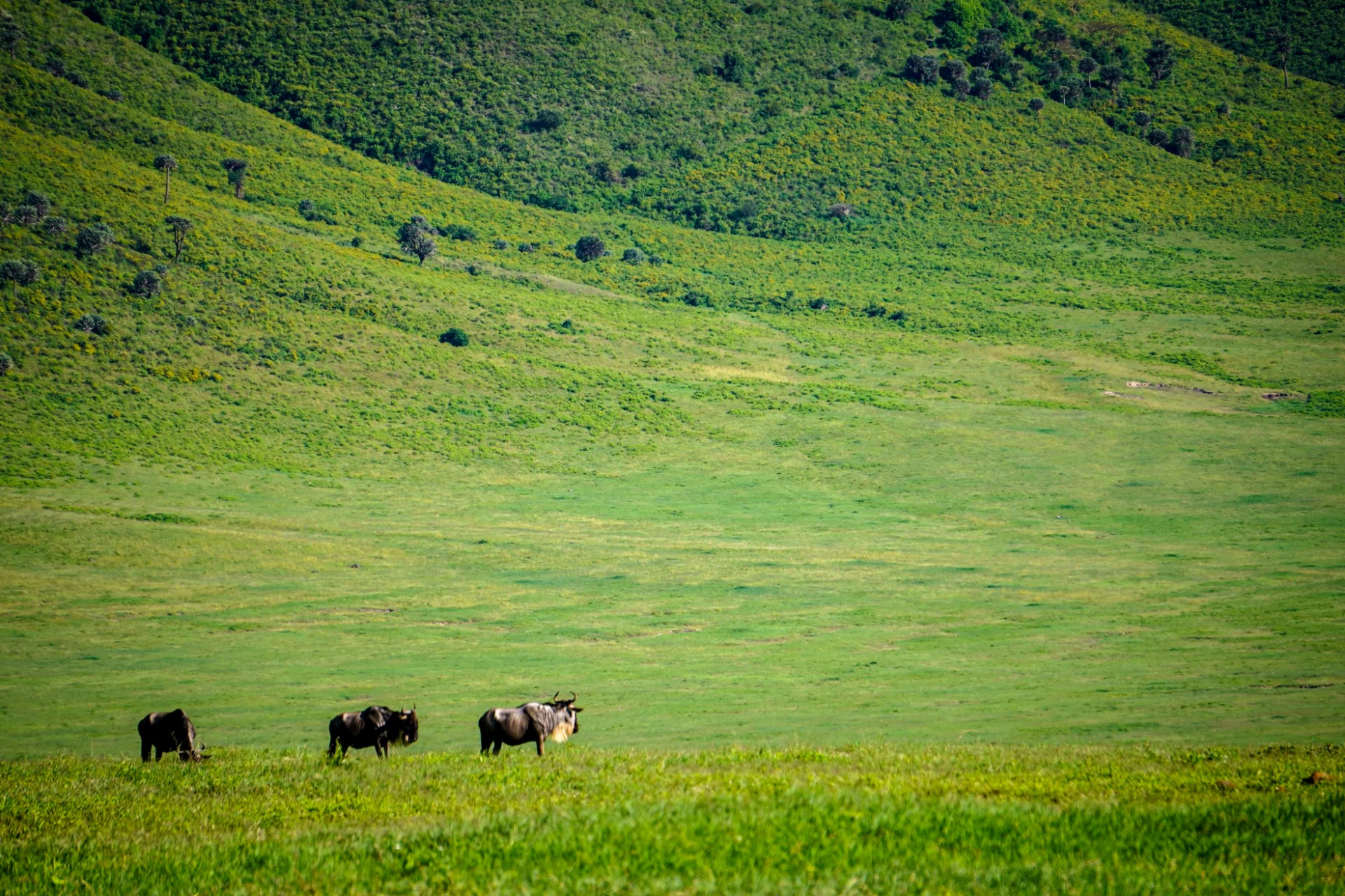 We started our 610 meter descent into the crater. And it wasn't long until we saw some wildebeest and more buffalo.