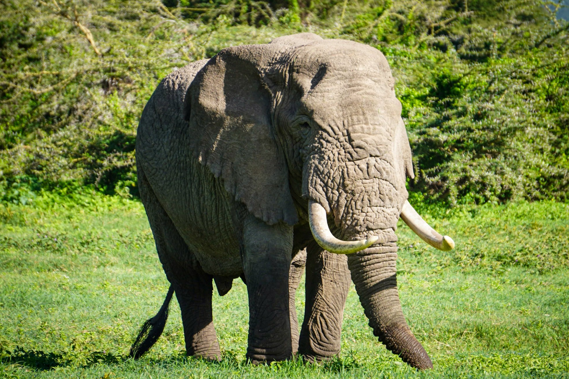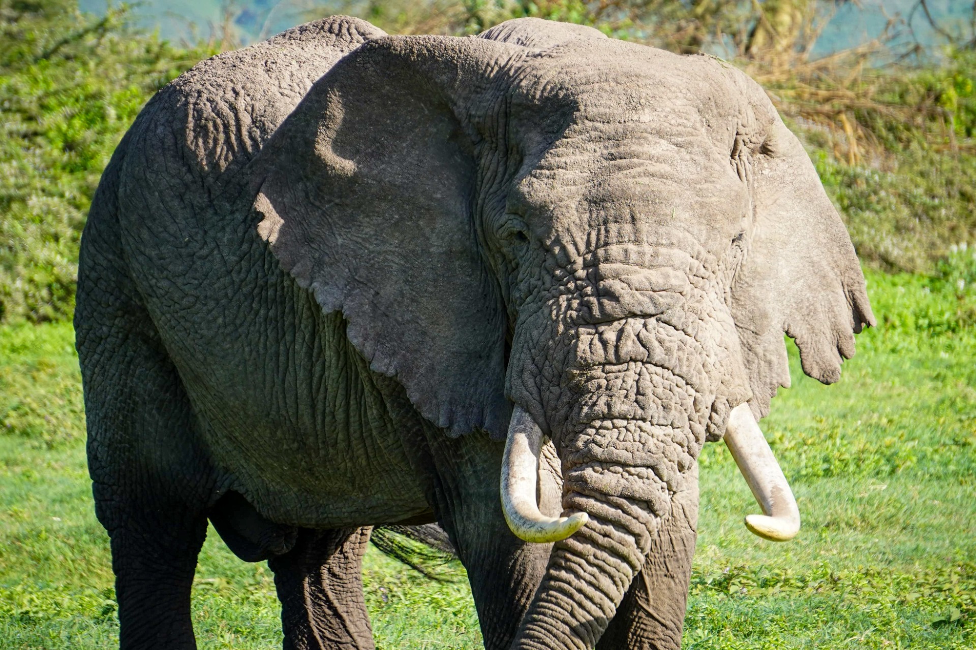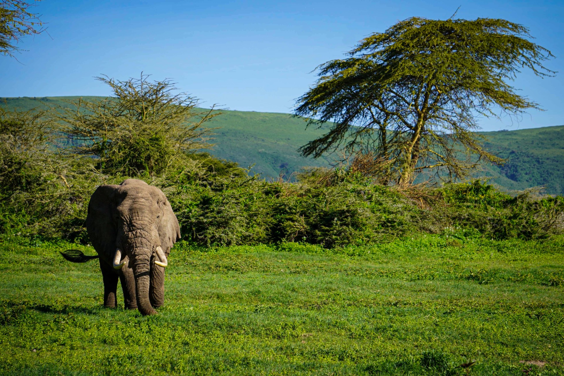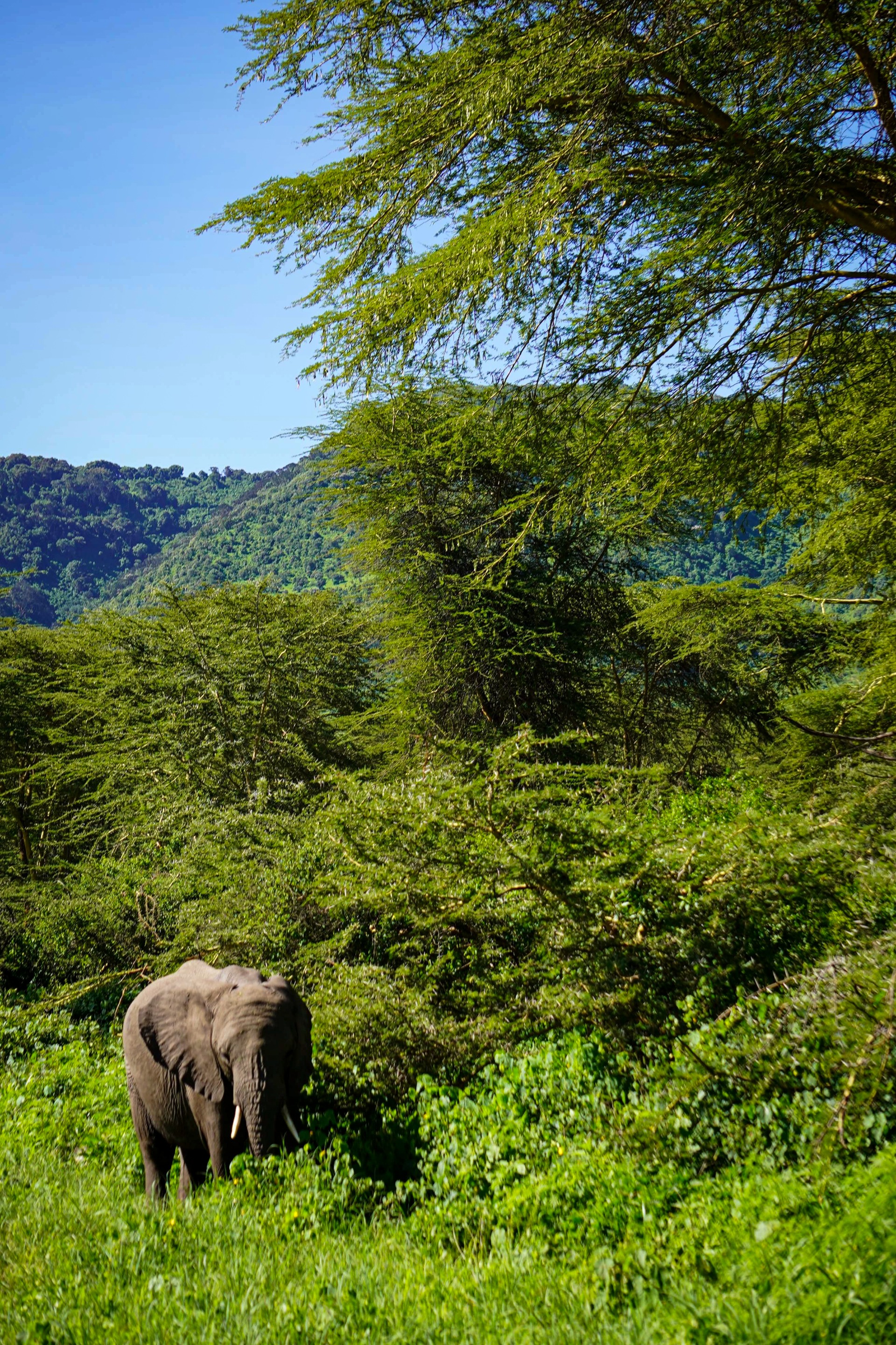 Once we reached the plateau of the crater a lone male elephant was there to greet us.