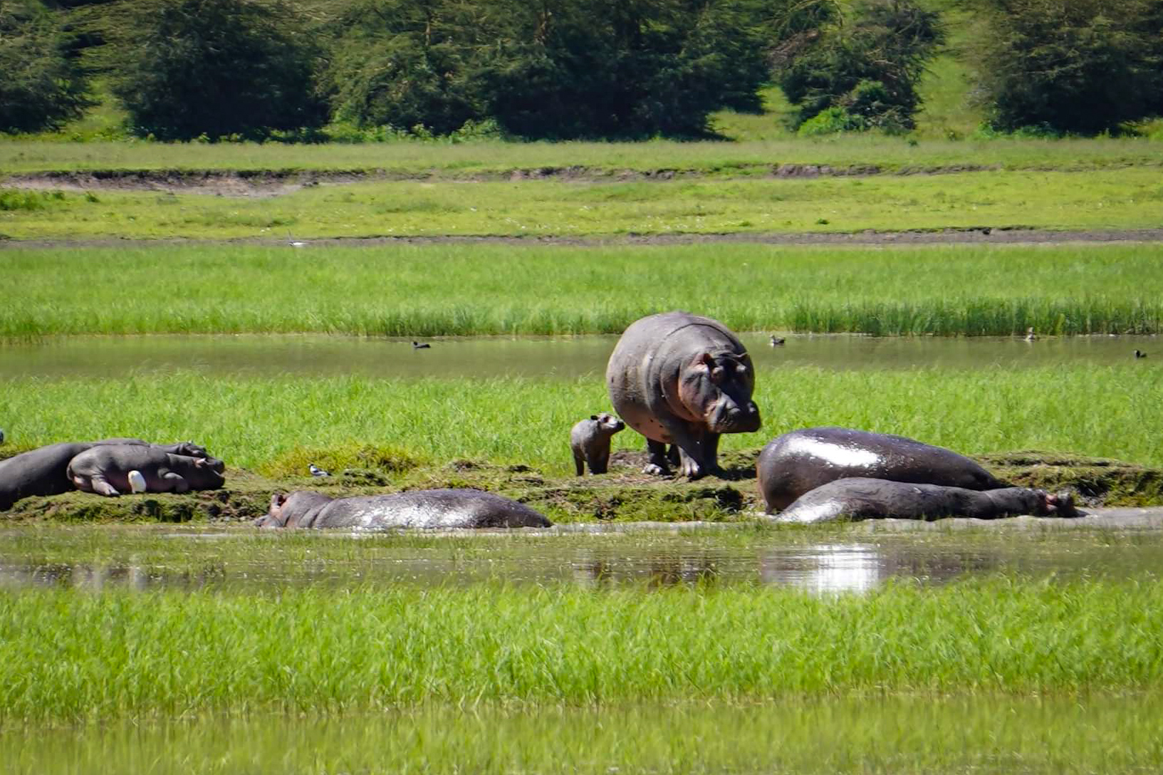 We passed a small lake which had some hippos laying about and also a mum and her baby.