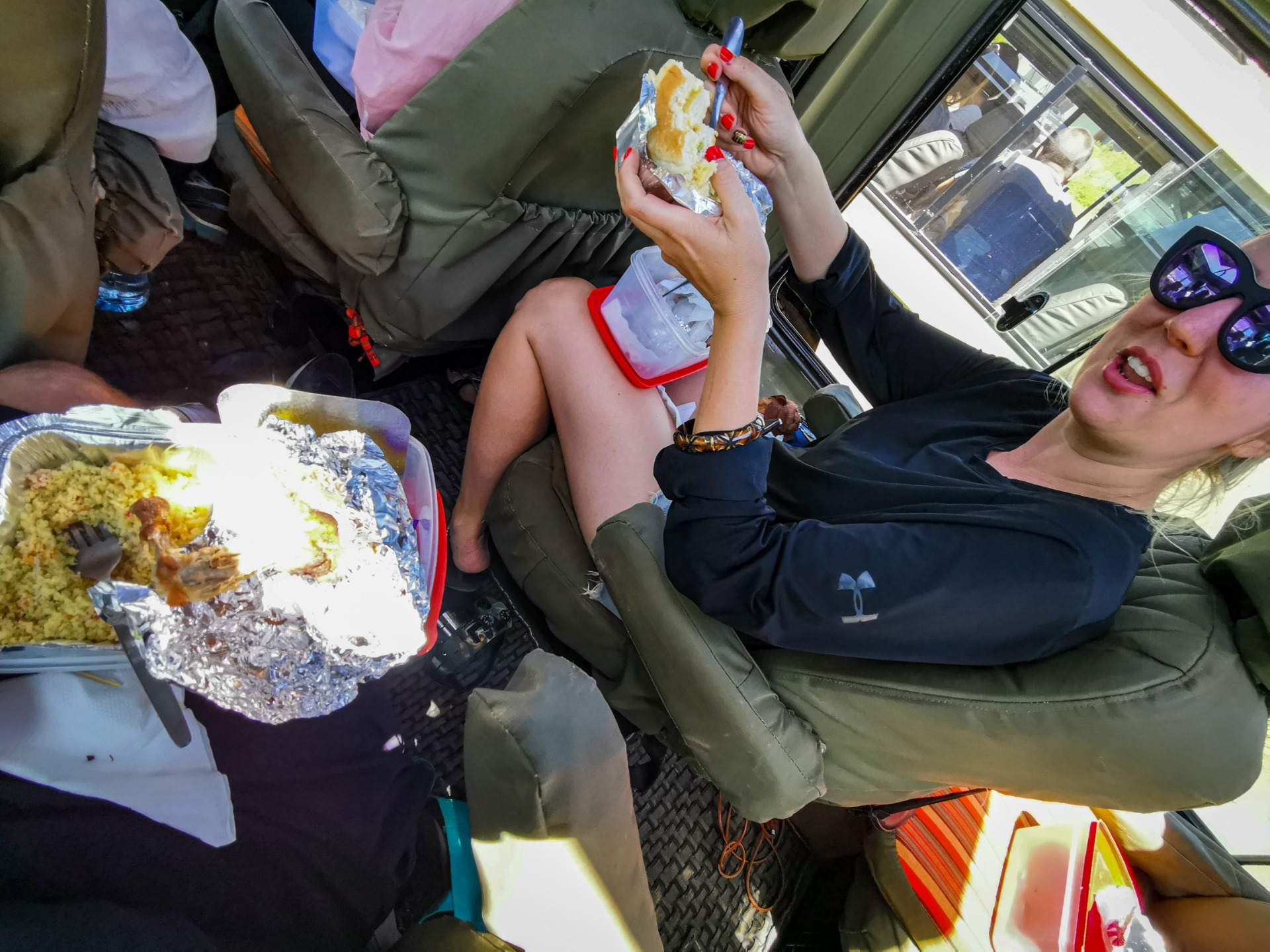 He was sitting under the tree when all of a sudden a Kite started to circle him above. Without him knowing as he was knuckle deep in his sandwich. The kite swooped down with the quickness trying to grab the sandwich out of his hand. Haha. The man was left with a bleeding hand but his sandwich grip was strong. He stuffed his fat face and said "oh yeah the guide warned us about this".