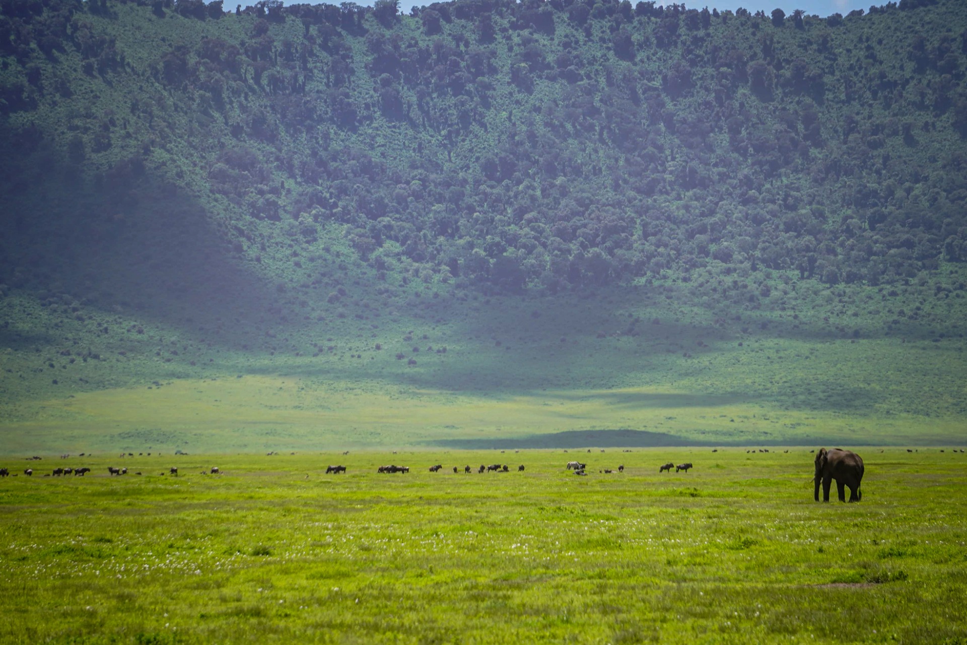 This volcano was supposedly larger than Mt kilimanjaro. When it exploded and imploded in on it self around 3.5 million years ago. And that's when all the animals moved in.